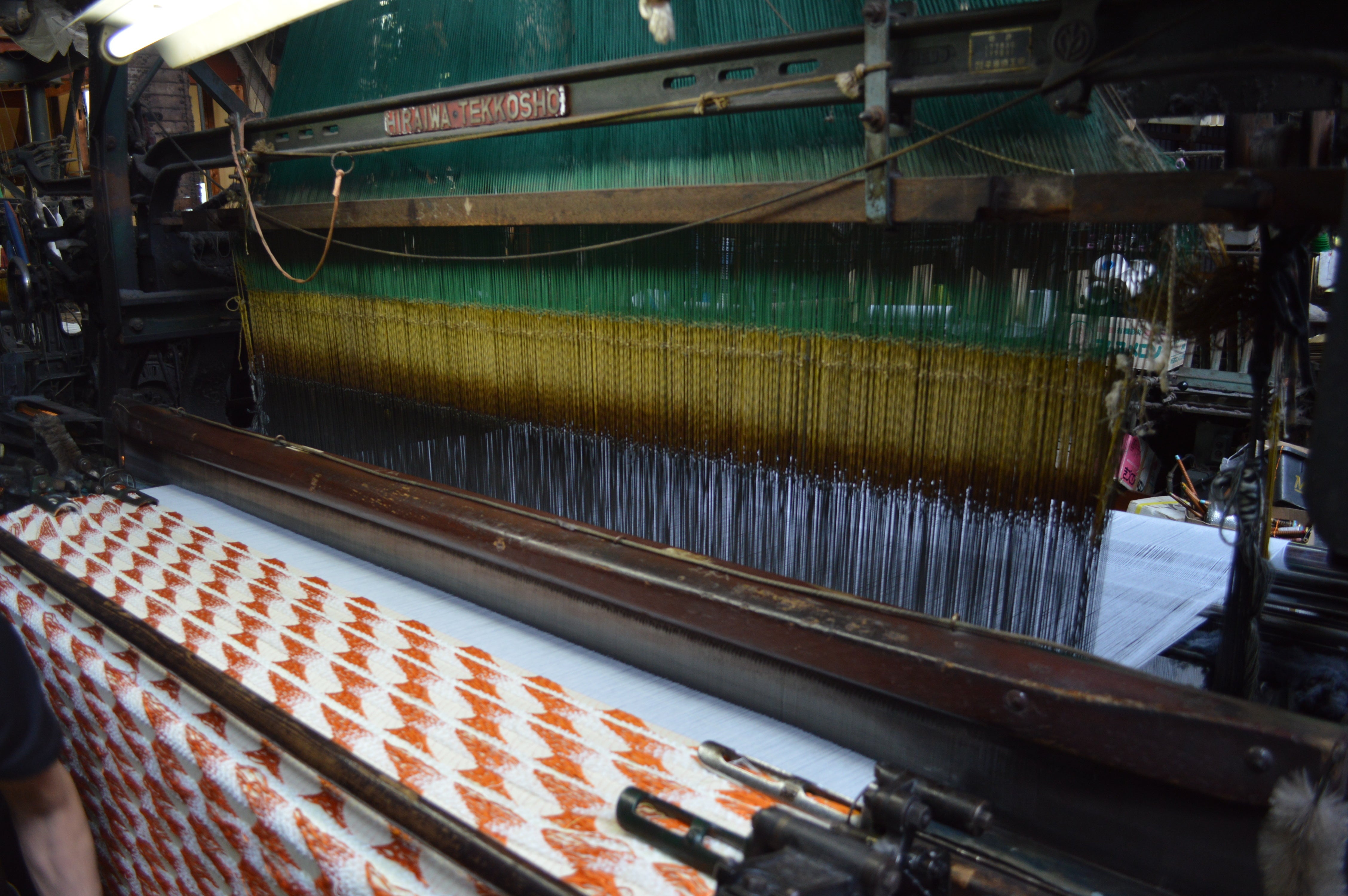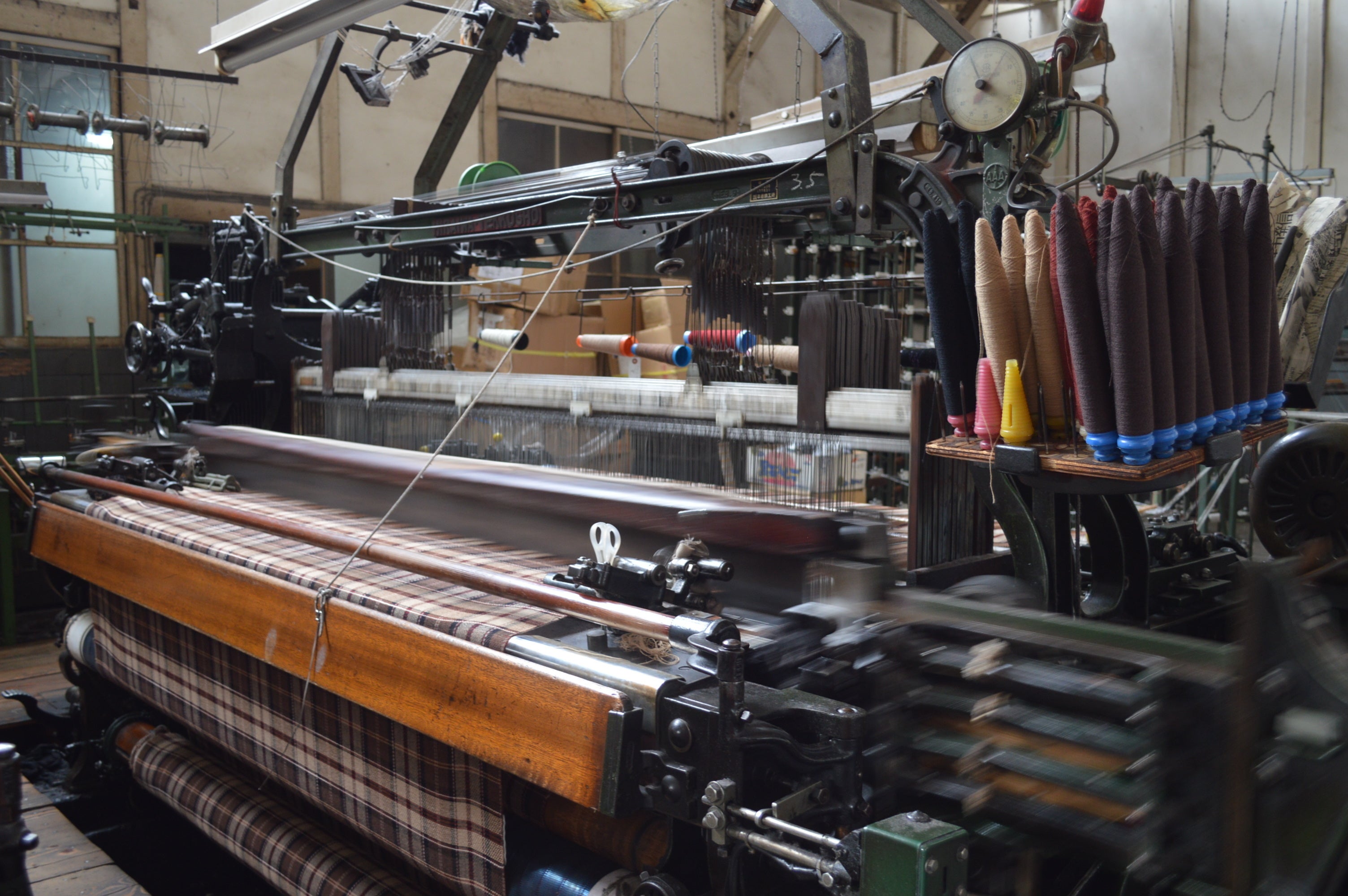 ションヘルだから織れるにしてもやはり織りにくい糸は織りにくいのです...!!ただションヘルはアナログなので職人さんの勘でなんとかなってしまう。。本当に職人さんありきの織機です。