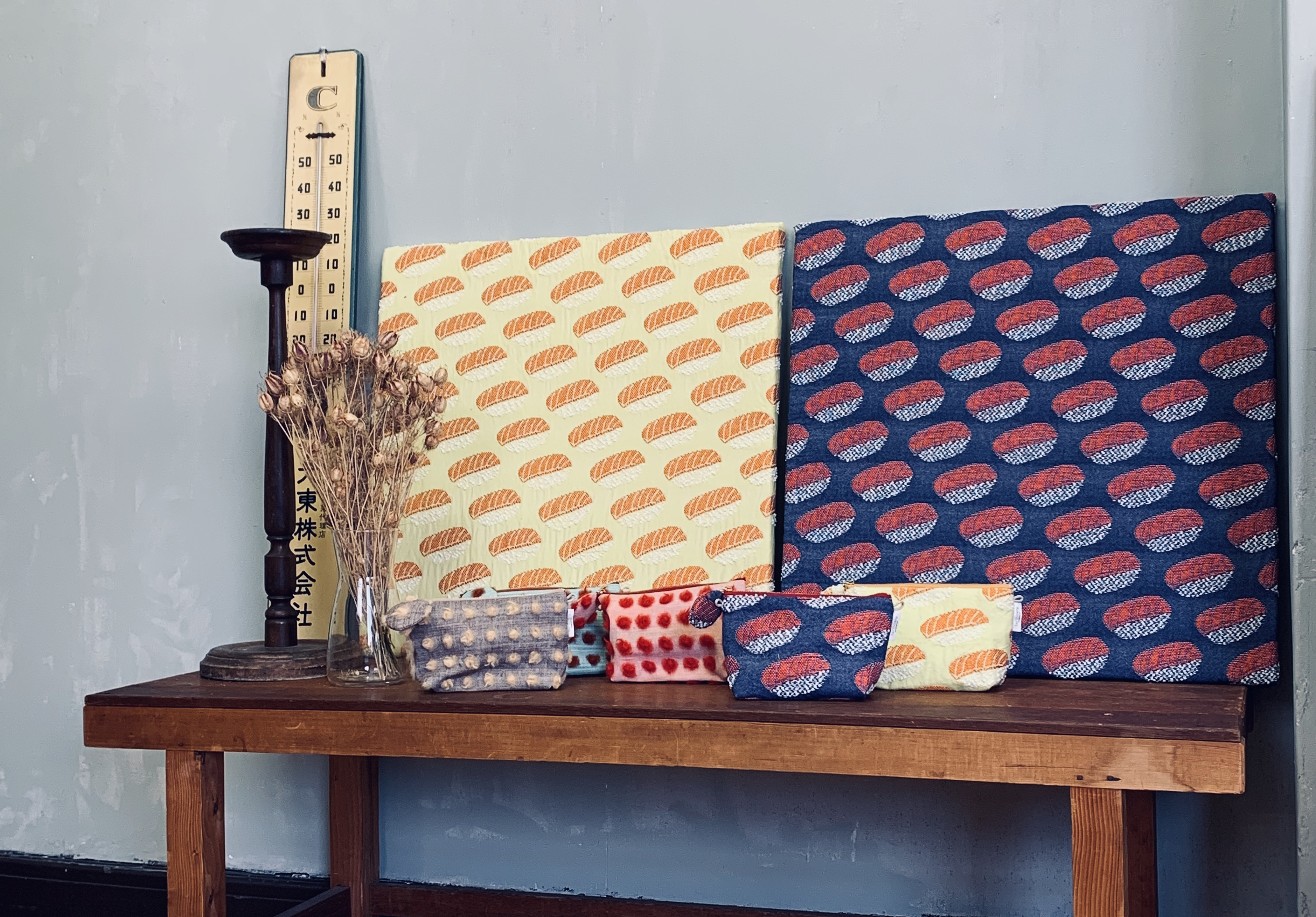 布を作る環境がやっと整い生産する体制がしっかり出来た今回、「ice cream」と「SUSHI」という新作テキスタイルを制作し、またこのサイトをお借りしてどのくらい反響があるのか、、今回このような形で受注を受け付けることにしました。
