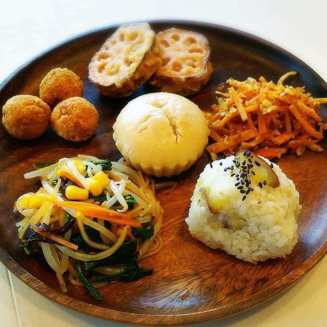 ご来店可能な方には開発レシピをもとに実際にお弁当やおやつを作るカフェBieco-shopの【飲食代金20%オフ券】の5枚セットをお送りします。※写真は日替わりランチ、Bioミネラル弁当の一部です。