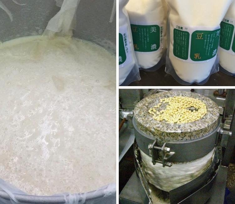 うすずみ桜 の根尾のミネラルたっぷりの森水を使って大豆をゆっくりと挽きます