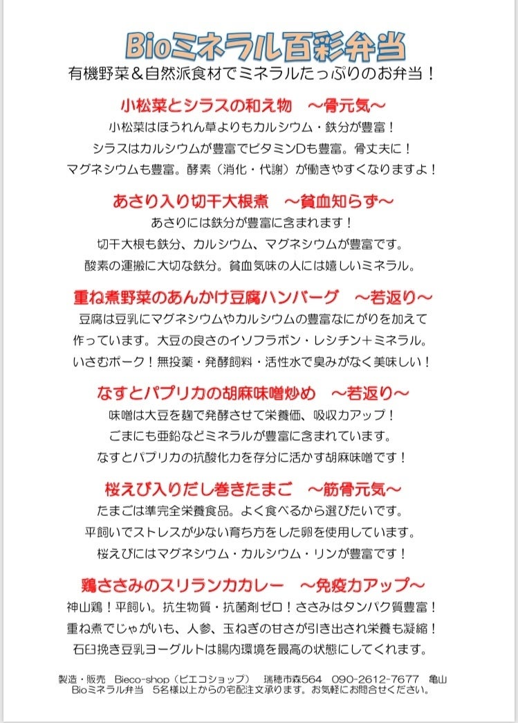 【ミネラル豊富なBioミネラル宅配弁当を作ろうプロジェクト】