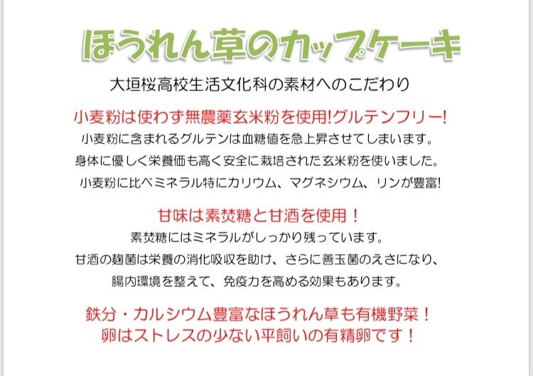 ※活動報告①(11月16日 岐阜県大垣駅前でのバザーでBioミネラル百彩弁当50個とBioミネラルなおやつ「ほうれん草のカップケーキ」を150個完売しました!美味しいという声と期待の声を多く頂きました)