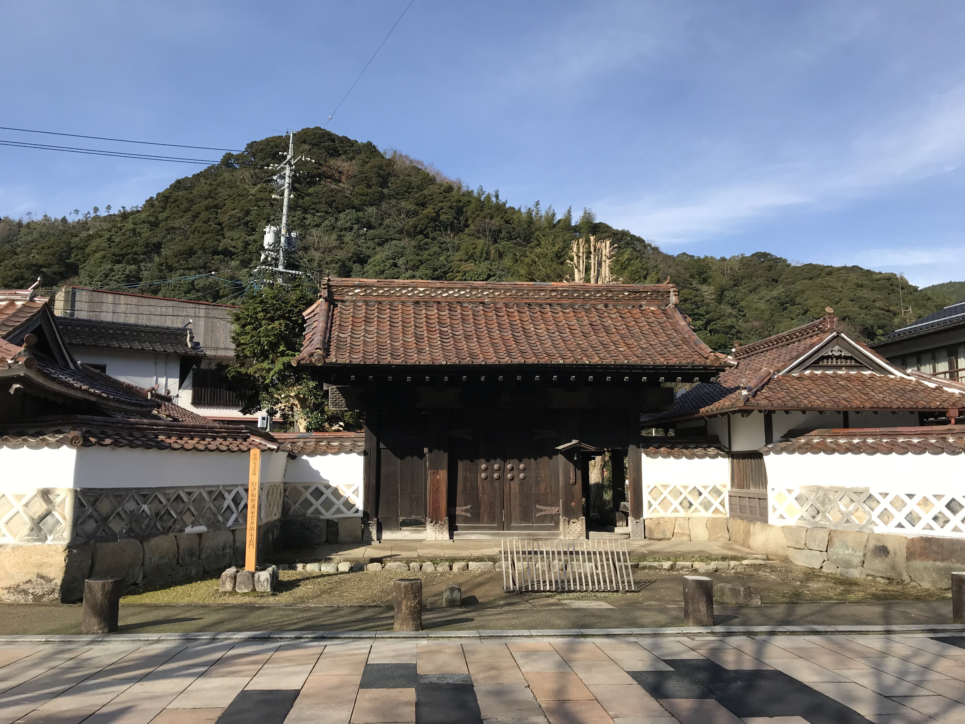 津和野は「山陰の小京都」とも呼ばれる古い街並みを残していることで知られています。町の中心である殿町通りの筆頭に、歴史的建造物として県重要文化財に指定されている多胡家家老門は位置しています。