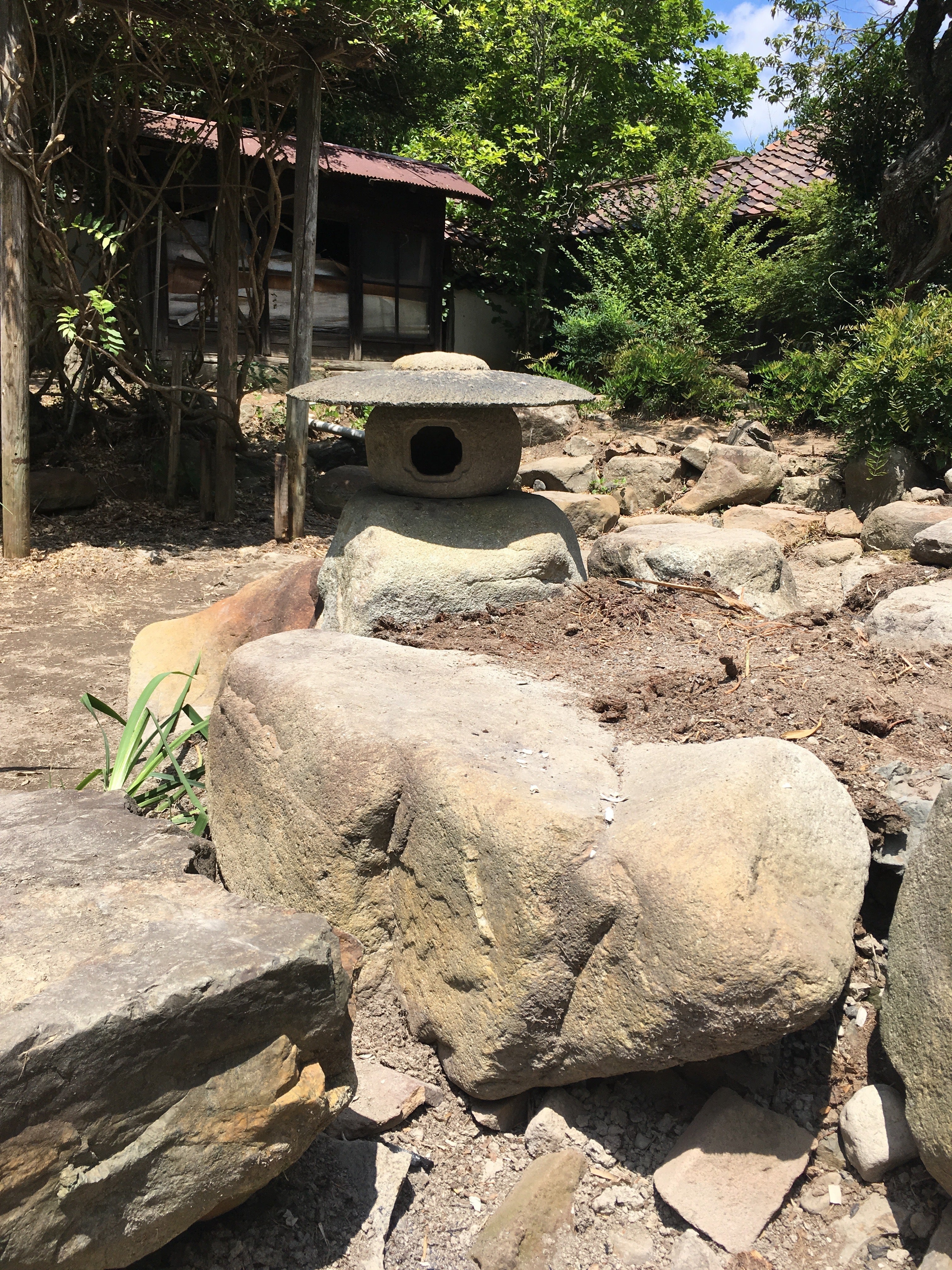 多胡家庭園 数年前の地震の影響で池の水が枯渇、徐々に荒廃が進行(2018年8月)