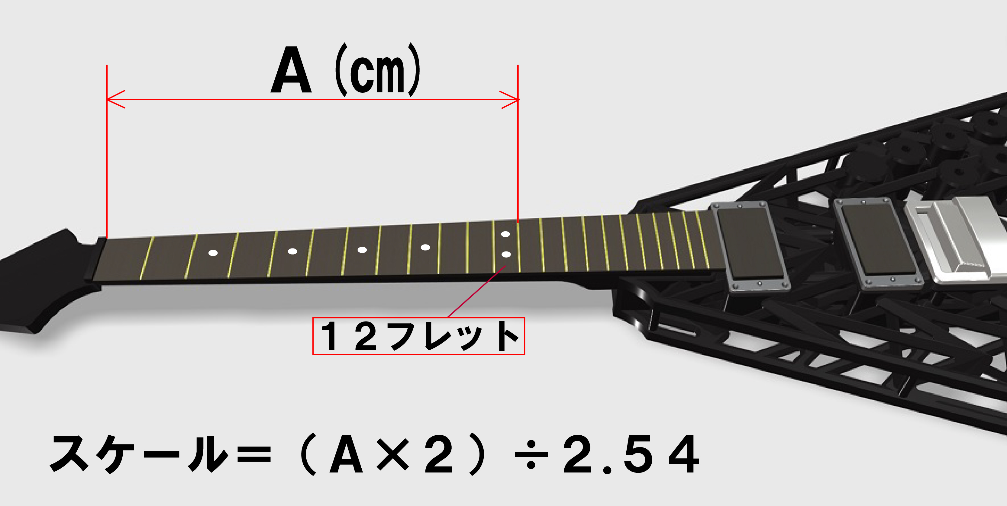 ・スケールは24 3/4, 25, 25 1/2インチの三種類をご用意致しました。下記スケール確認&計算方法を参考に愛機のスケールをご確認下さい。