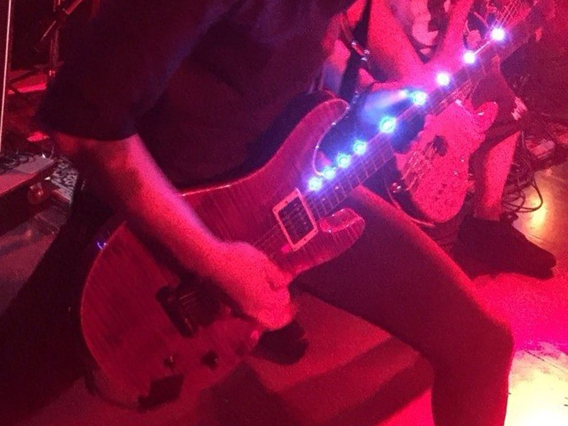 当アイテムは【MY FIRST STORY】のギターリストTERUとの共同開発によって誕生した商品となっております。マルチカラーを採用したり、テープ状のLEDのカバーコーティングの硬さや装着後のネックの握り具合など・・・・あらゆる面でご協力頂きました。もちろん実際のライブでも装着し、現在最終テストを進行して頂いております。生産一歩手前のサンプルまで完成し金型も完成しておりますので、プロジェクト成功になり次第生産進行となります。