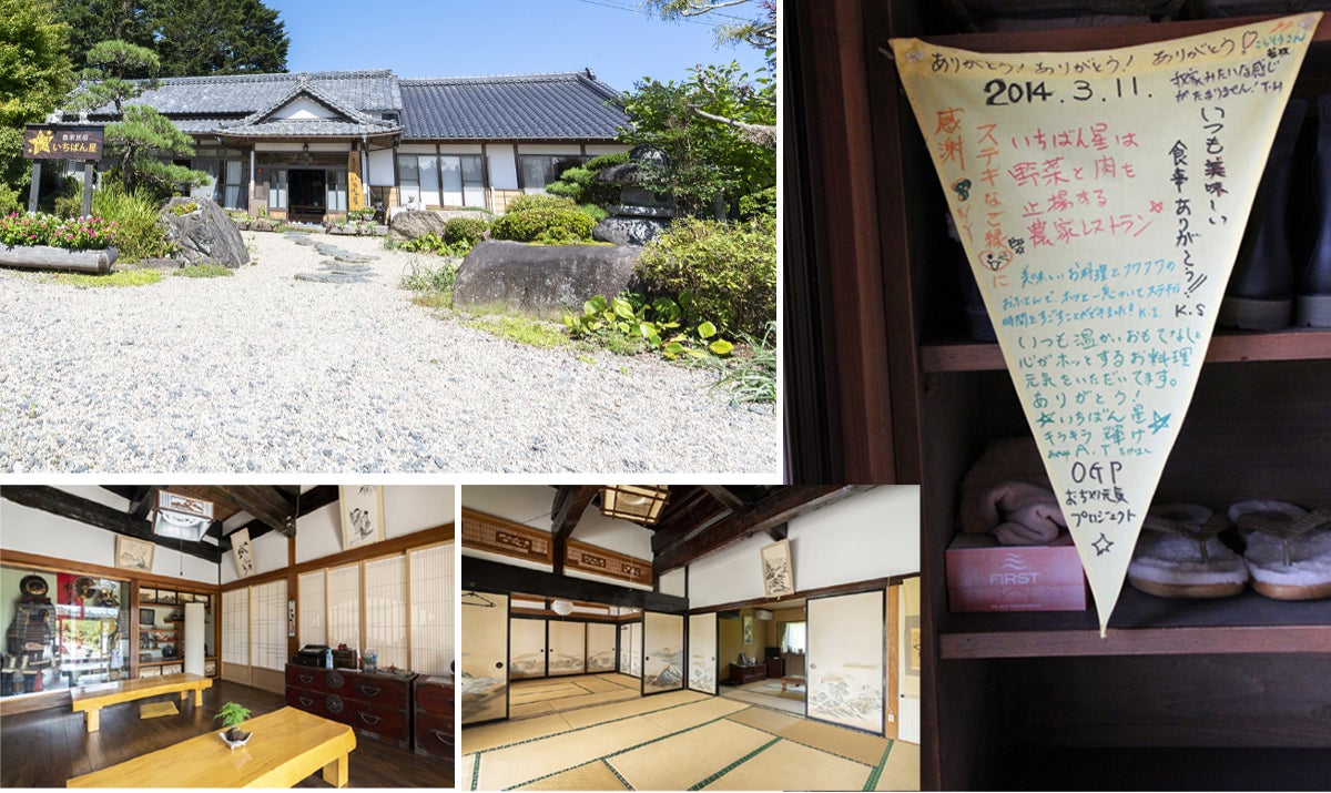 農家民宿「いちばん星」。玄関には宿泊いただいた方からのメッセージも。