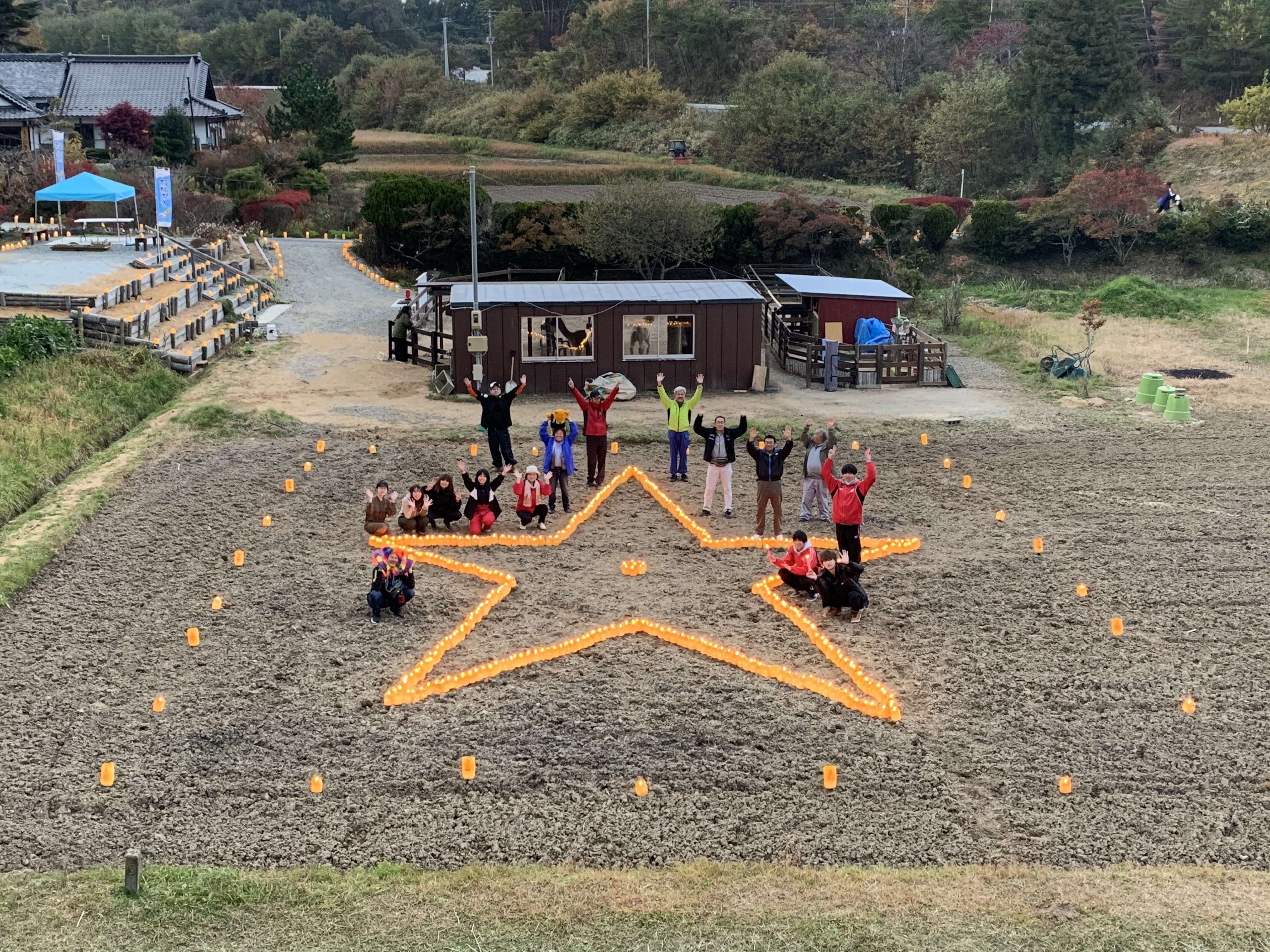 牧場内に星の形を作って準備完了!みんなで記念撮影