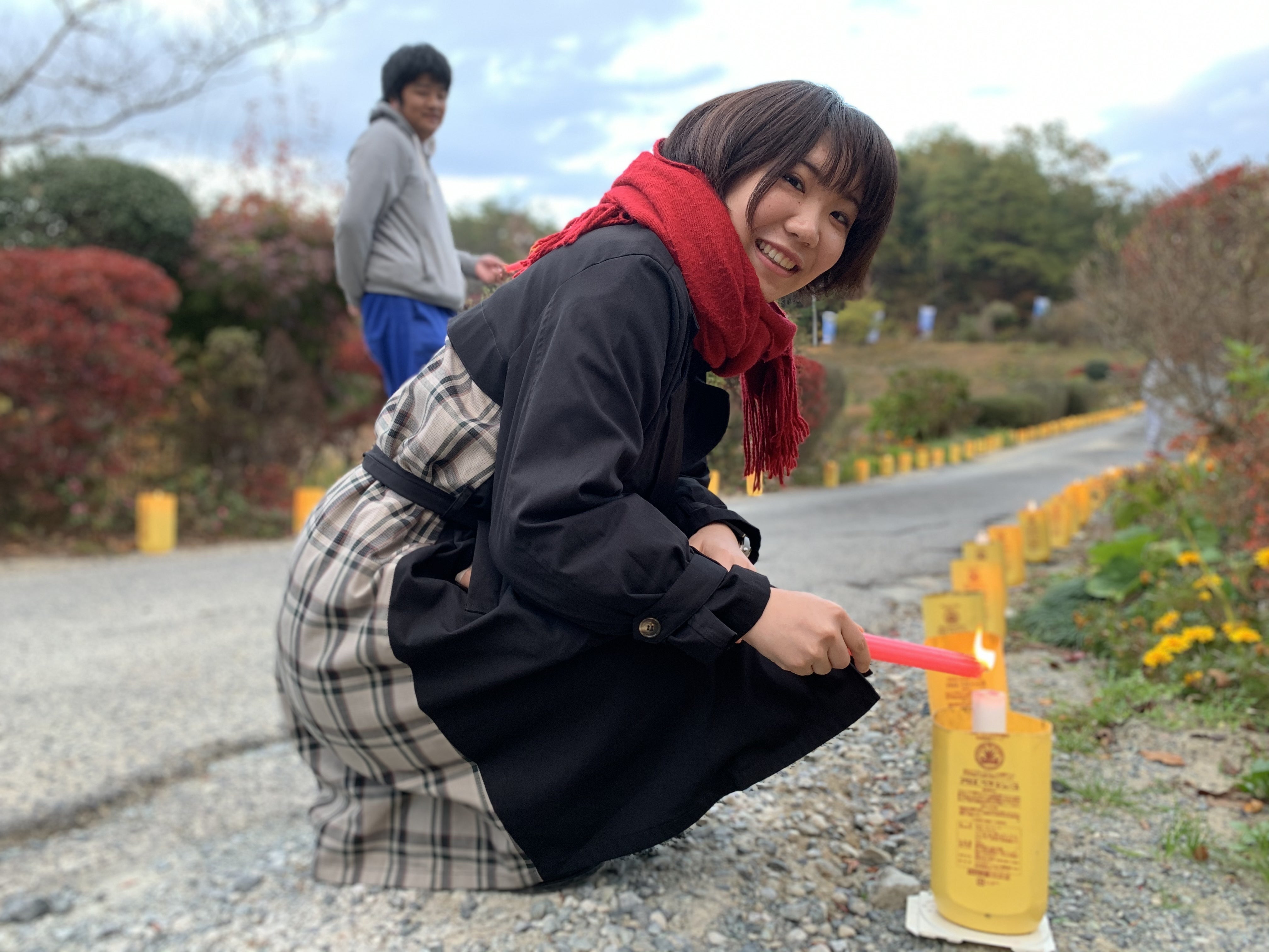 敷地内いっぱいに置いたろうそくアートに点灯していきます!