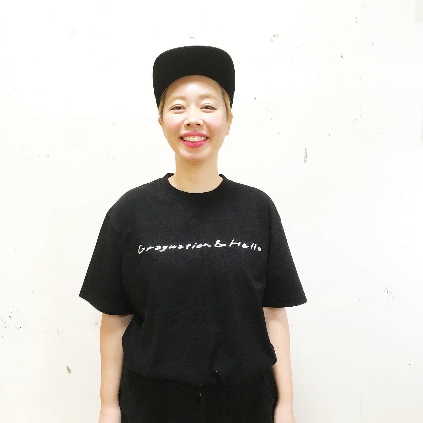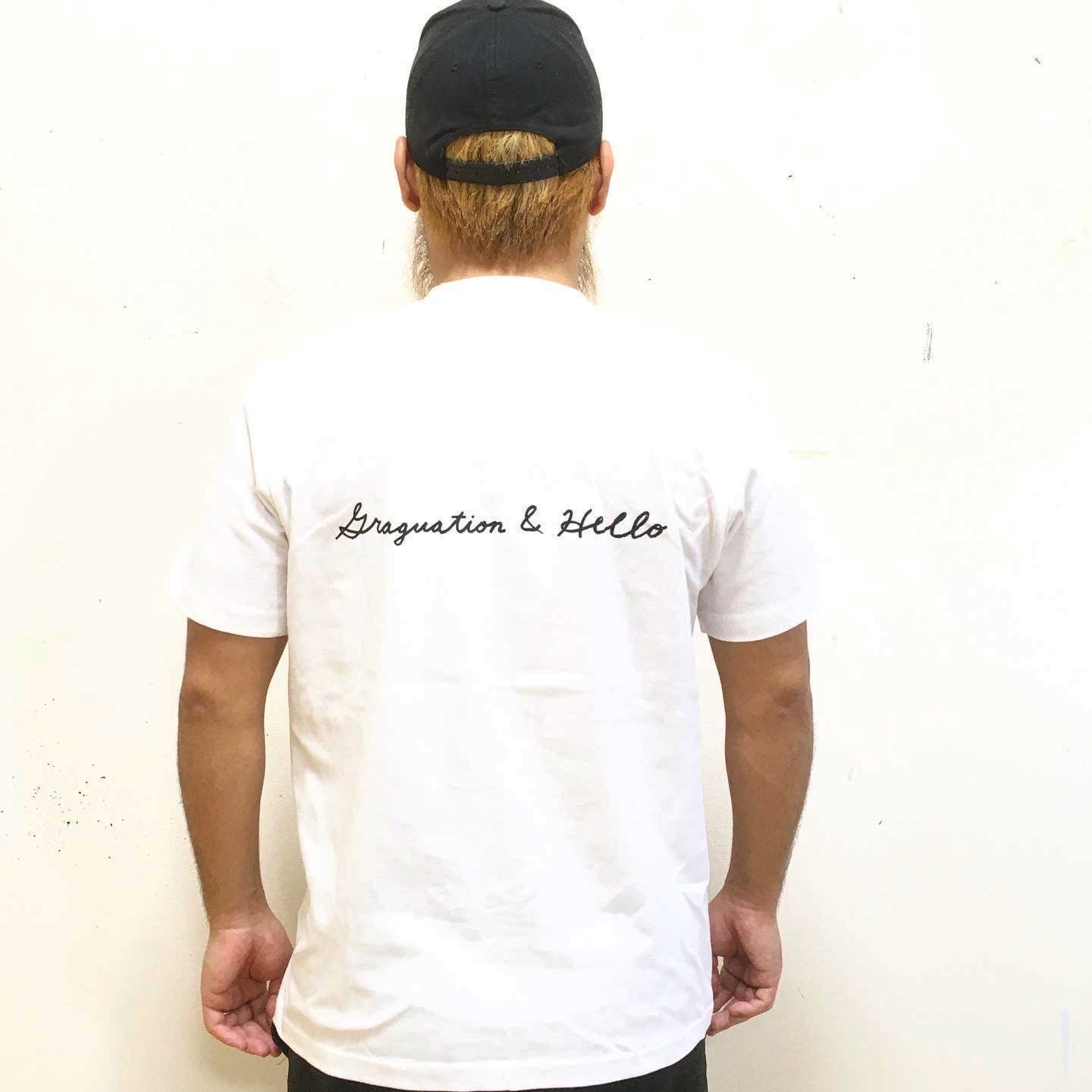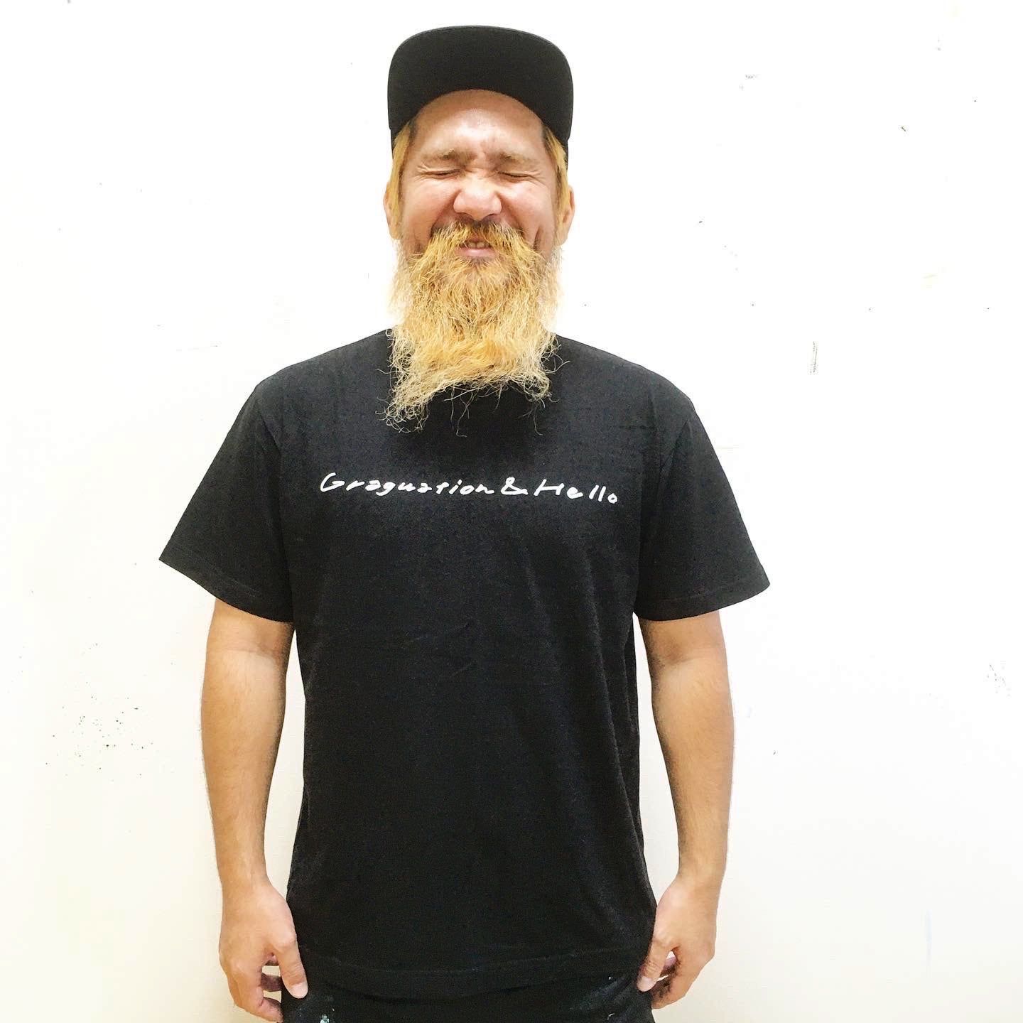 Tシャツ<タイプ2>は、FRONT・BACKともにプロジェクトのテーマである「GRADUATION and HELLO!」の直筆プリントのメッセージ入り。(BLACK BODY)