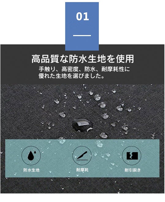 A:完全防水ではございません。長時間、直接雨がかかると水が浸透する可能性がございます。