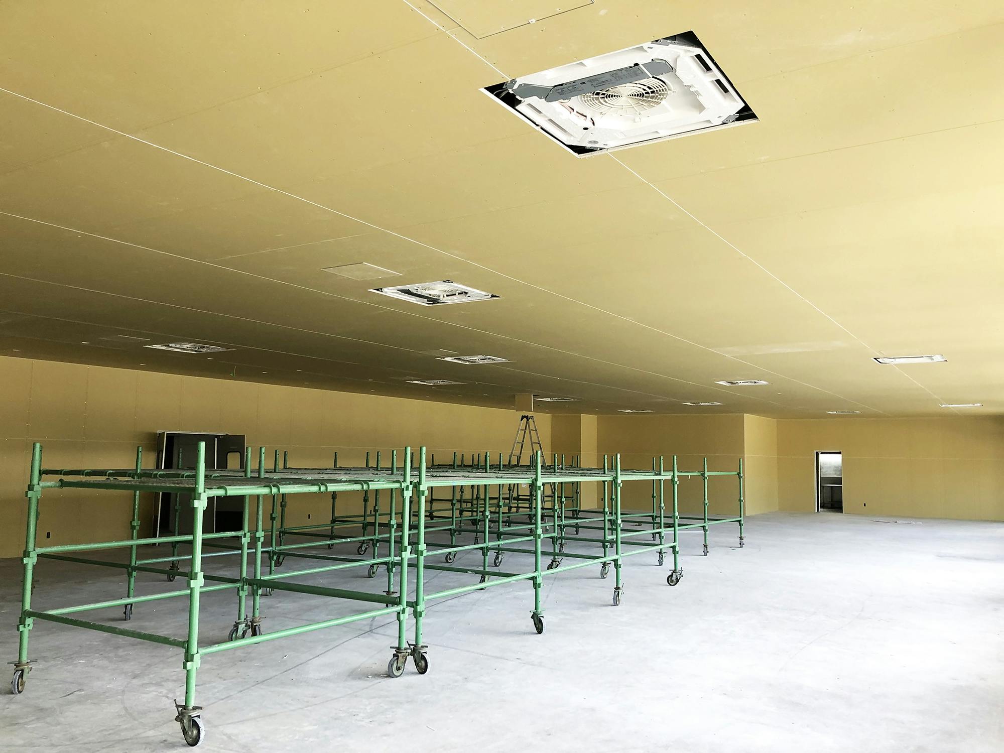 昨日、現場をのぞいてみると、作業員の方々の姿は見えず、ドリルの音だけがゴゴゴゴゴー、ゴゴゴゴゴーっと響いていました。ついこの間までは床に脚立や工具も置かれていたのですが、きれいに。おかげで全体を撮影することができました。