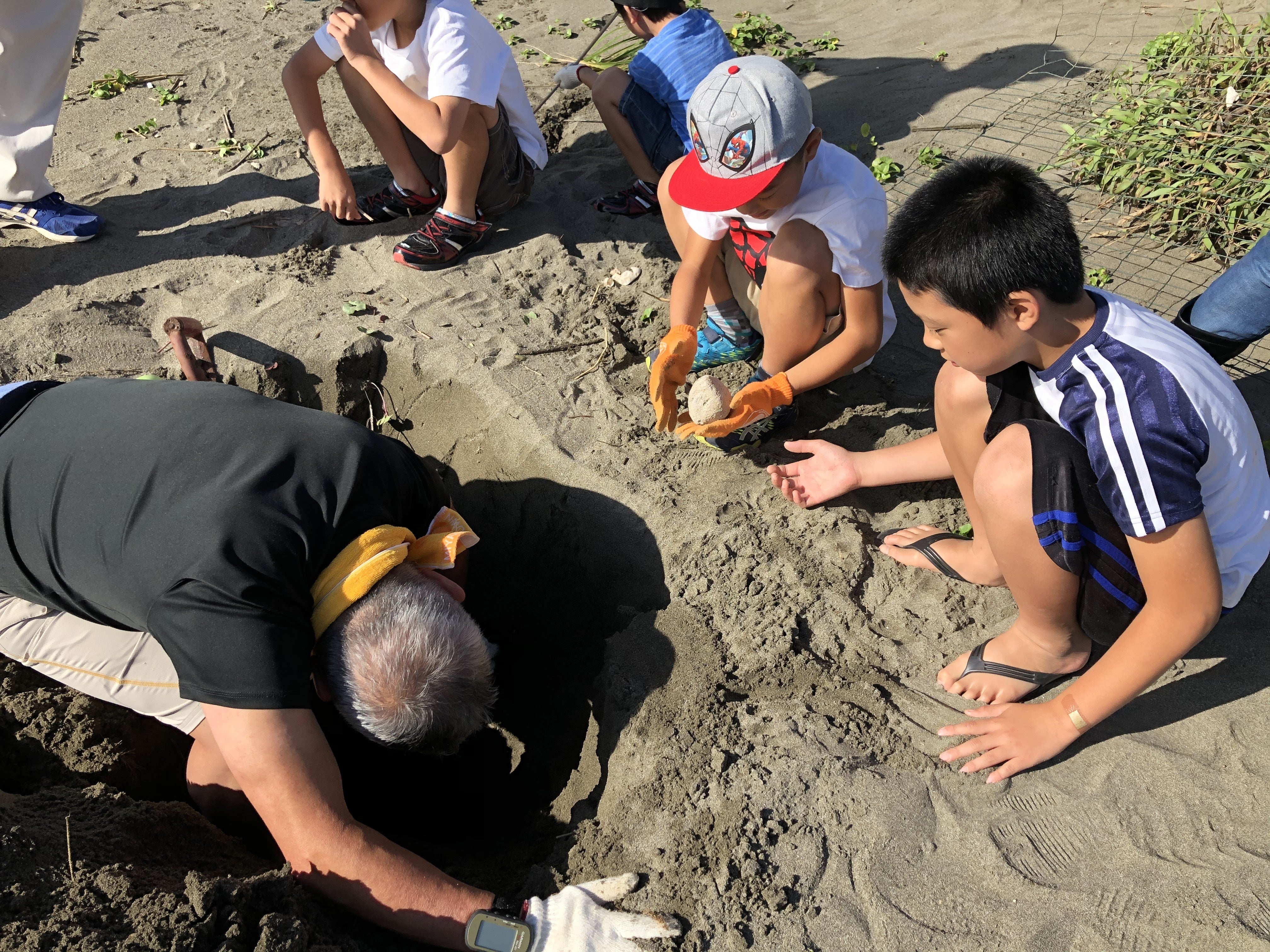 砂の中からは殻が水分を吸ってぺろんぺろんになったものが出てきました。ウミガメの卵をじかに触れる環境って、子どもたちの学びに素晴らしい条件だと思いませんか。