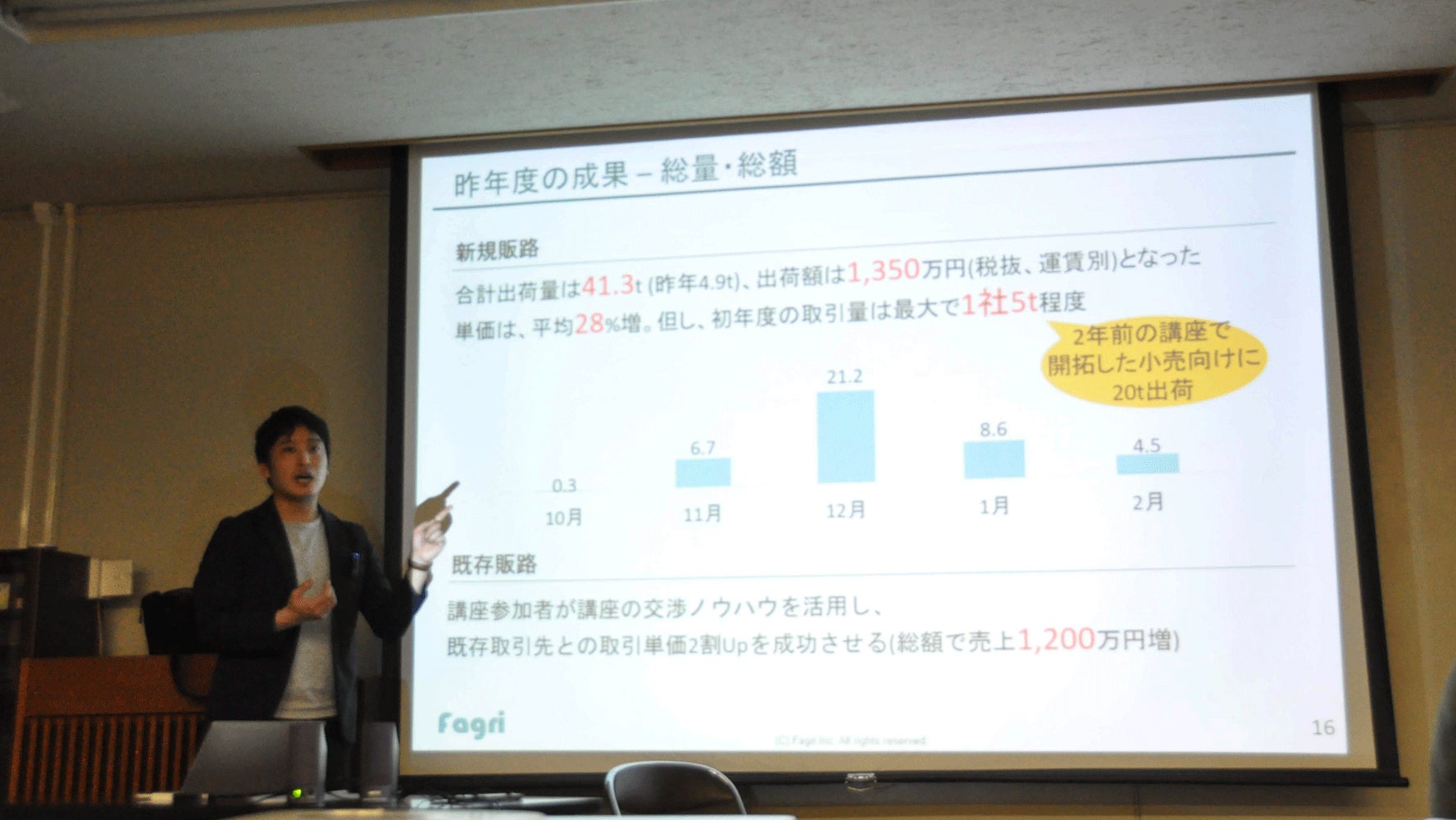 健介さんは、農家さんの所得向上を目指し、商談会に出展して単価2割増での販売まで伴走する「販路開拓プロジェクト」を実施しています。