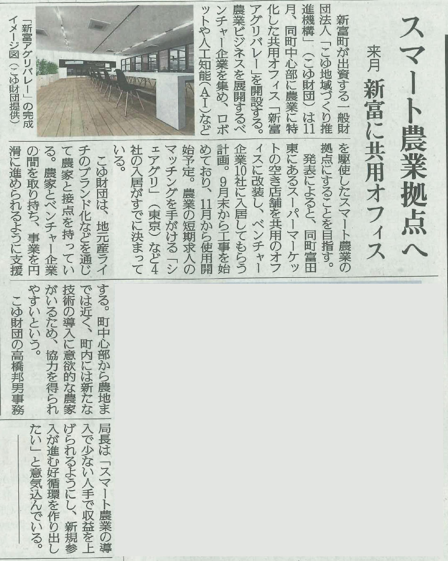 大きな見出しで、10月17日付の読売新聞に「新富アグリバレー」の記事を掲載していただきました!