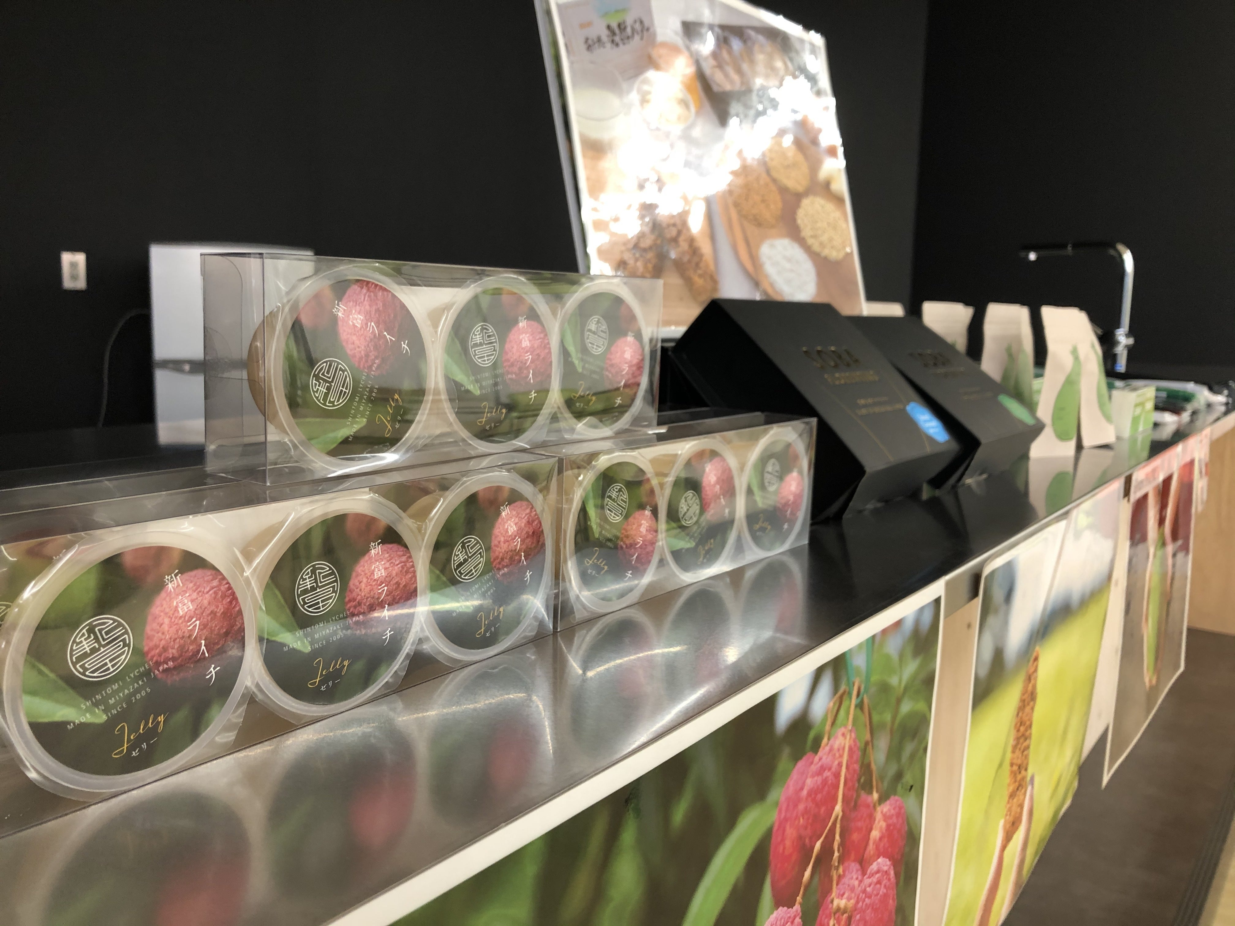 ほかにも、こゆ財団がプロデュースしている加工品のブースも。「宮崎そばフロランタン」に、新商品「新富ライチゼリー」も登場します!