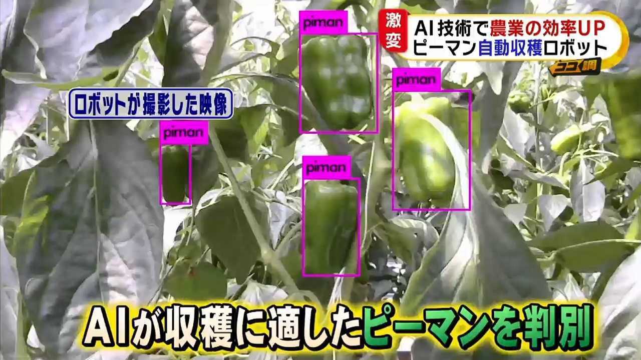 冒頭の写真は、収穫しごろのピーマンをAIが認識している様子です。