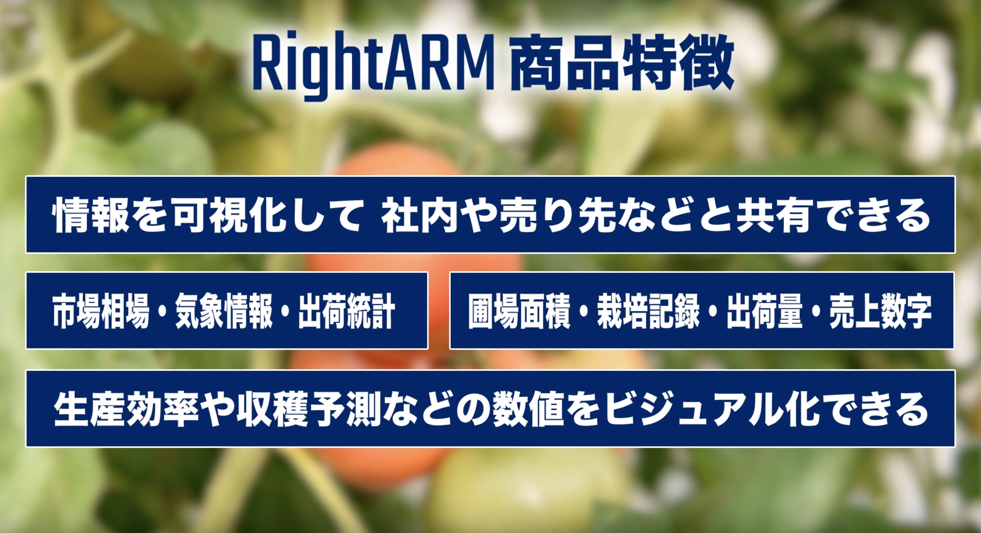 話をしているのは、農業の経営を見える化するサービス「ライトアーム」についてです。
