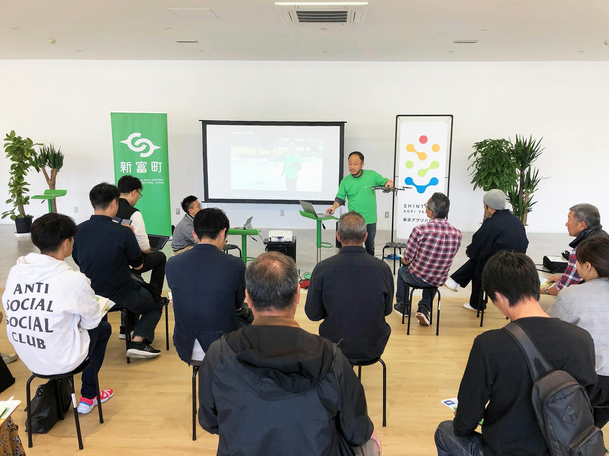 本日の「新富アグリバレー」は、農業用ドローンの勉強会!町内の農家さんはもちろん、役場の方、一般の方、遠くは鹿児島からもお客様が!