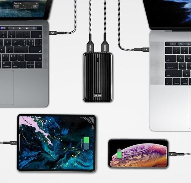 SuperTankは、2つのUSB-C PD(100W + 60W)および2つのUSB-Aポートを兼ね備えた27,000mAhの大容量モバイルバッテリーです。 MacBook Proはもちろん、パソコンおよびその他デバイスを同時にすばやく充電します。出張や旅行の長期外出でも複数回スマートフォンを充電できるパワーがあります。