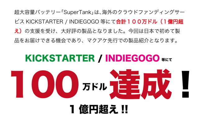実際にアメリカのクラウドファンディングKICKSTARTERとINDIEGOGO等にて合計100万ドル(1億円超え)の資金が集まった大人気の製品です!