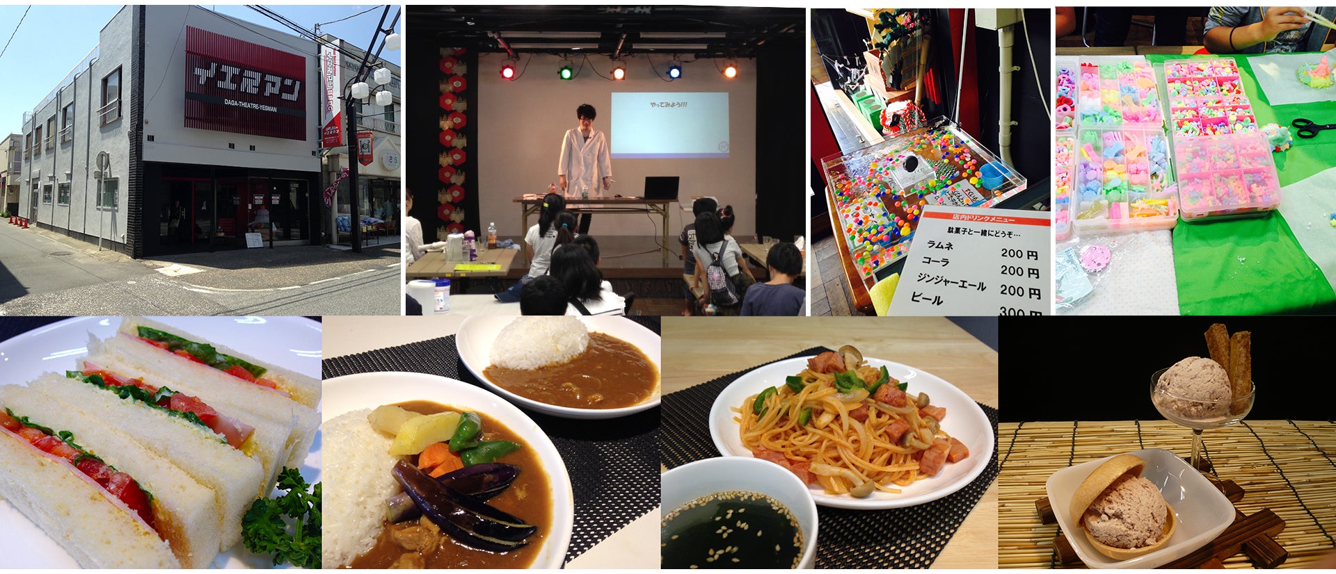 駄菓子販売・ランチなどの飲食の通常営業に加え、お笑い、音楽などのライブイベント、