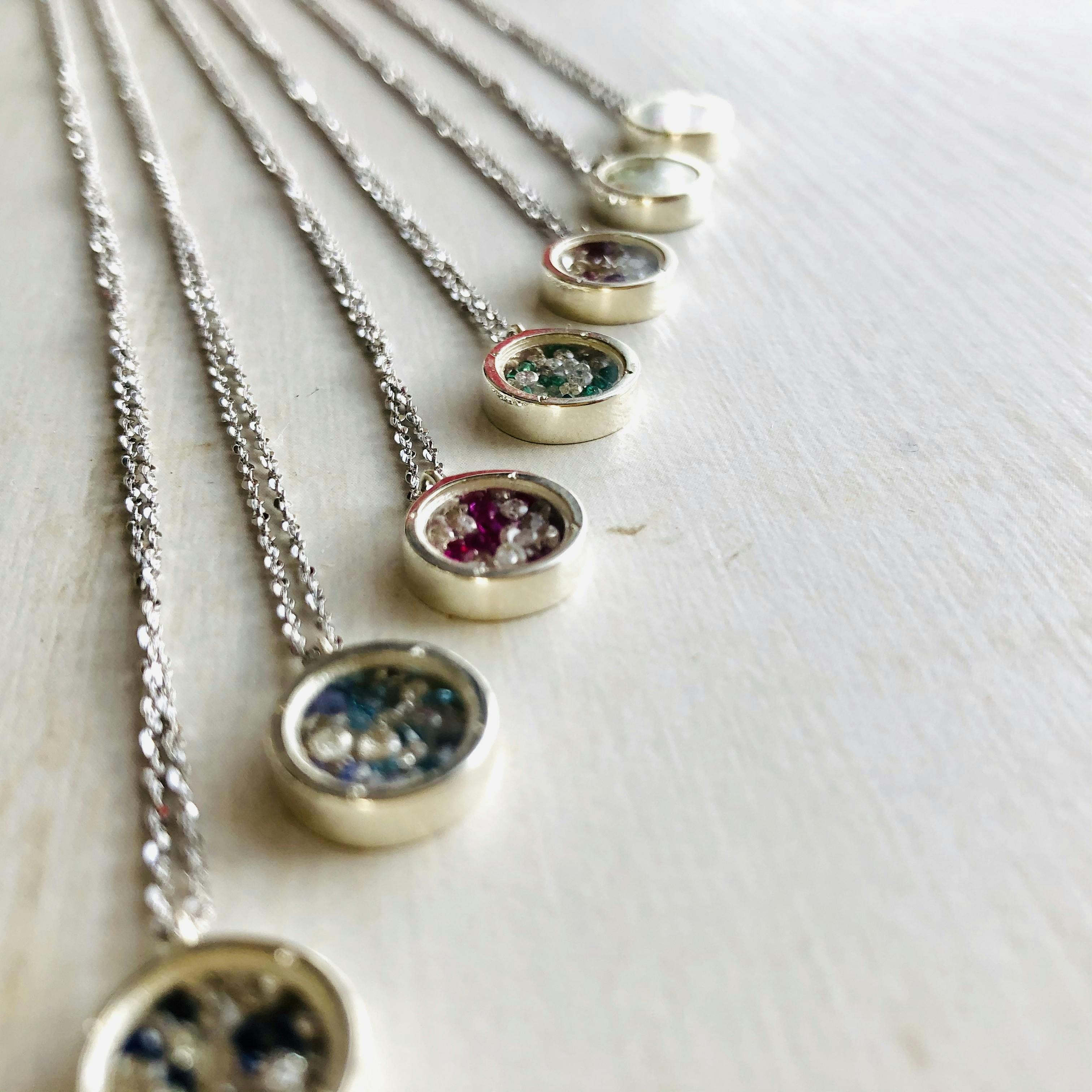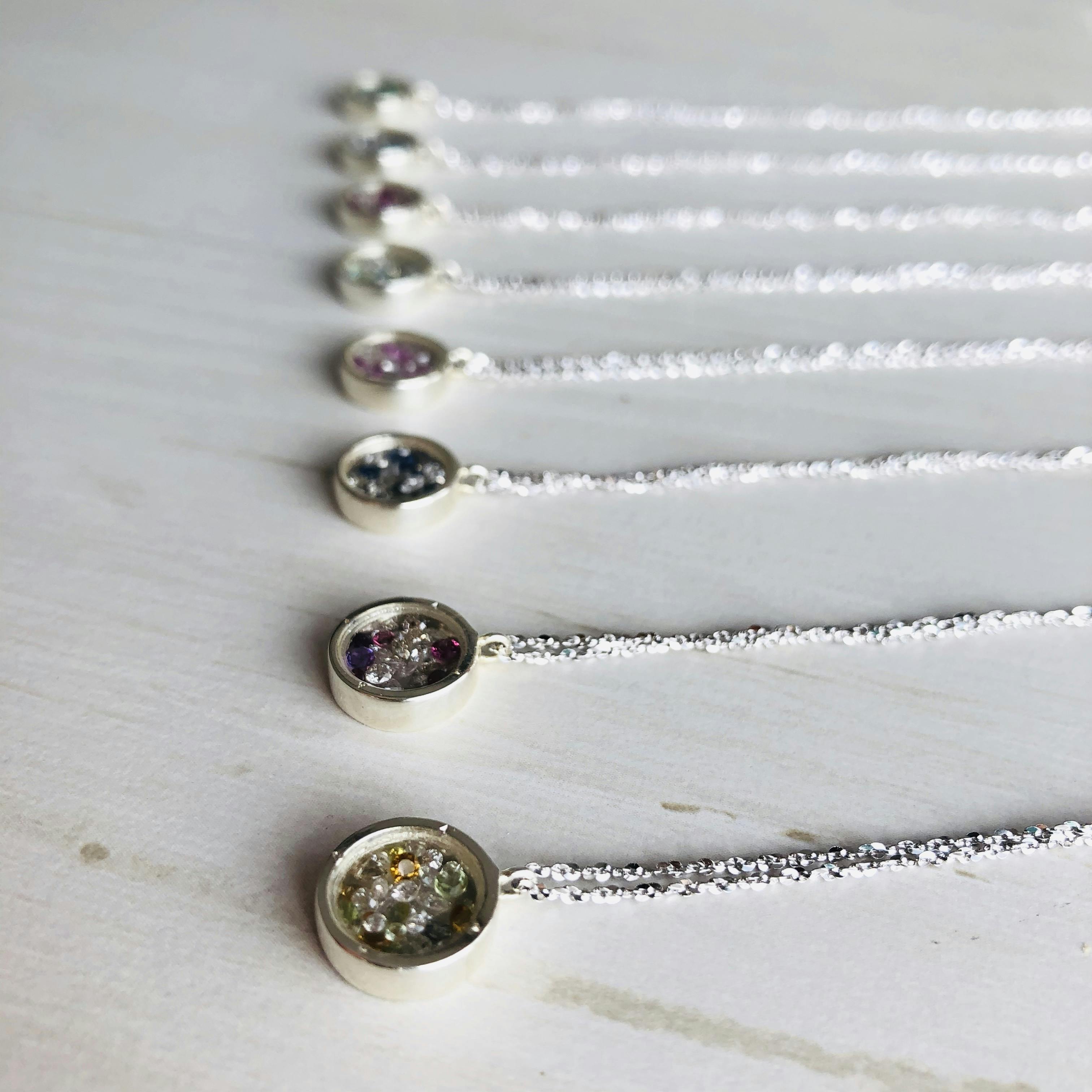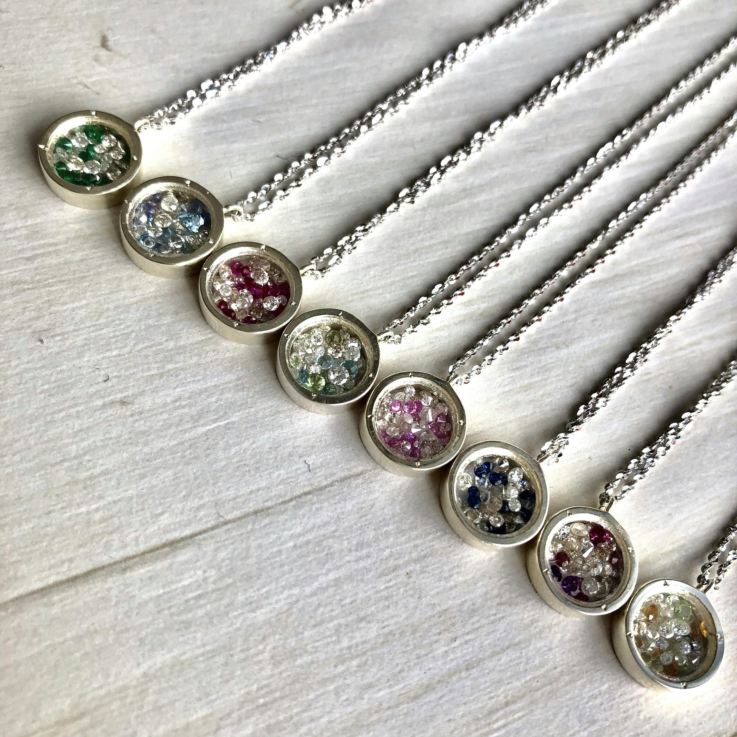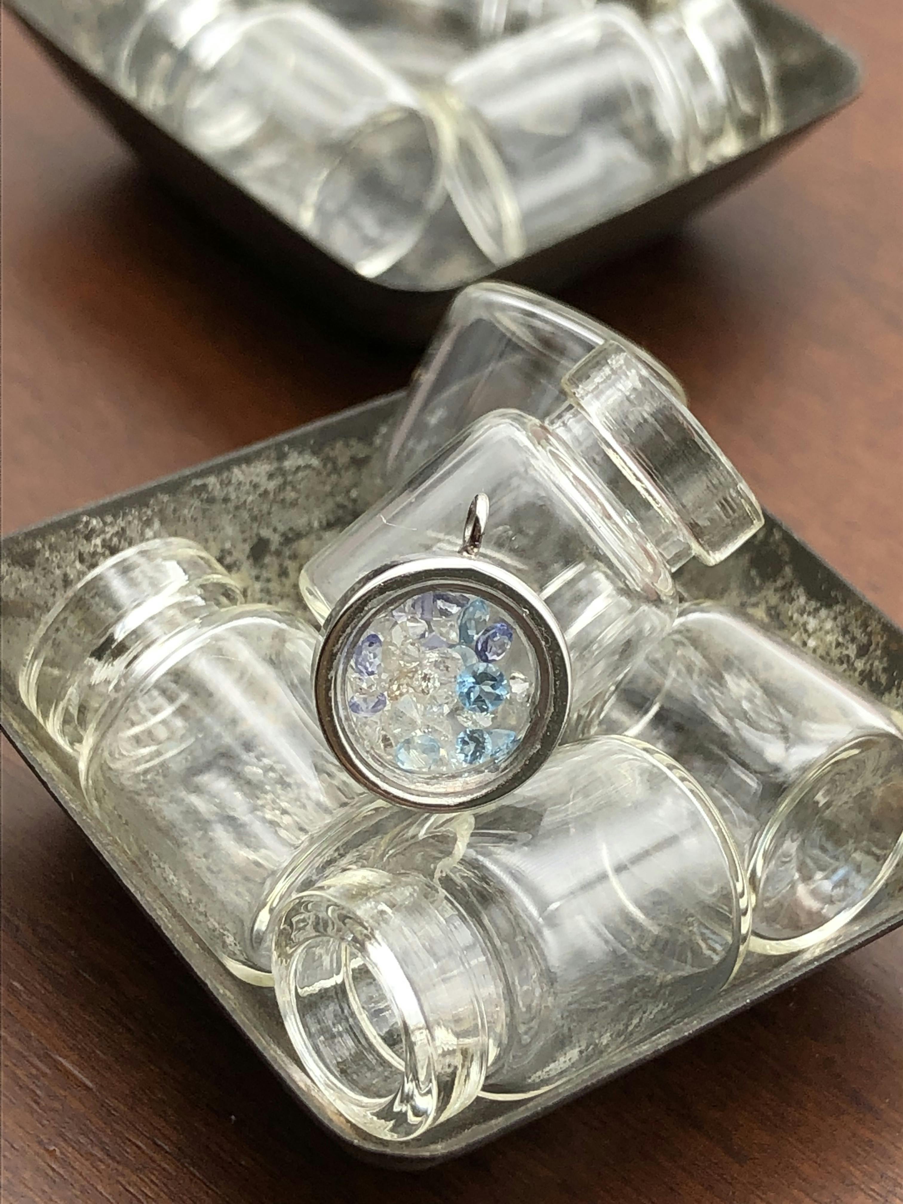 "小さくて可愛い時計用ガラスに天然ダイヤモンドと綺麗なカラーストーンを閉じ込めました" まるでファンタジーの世界のペンダントです!カラフルなだけではなく、天然ダイヤモンドも豪華に0.4カラットお入れしてますので、ホントにキラキラと輝きます!