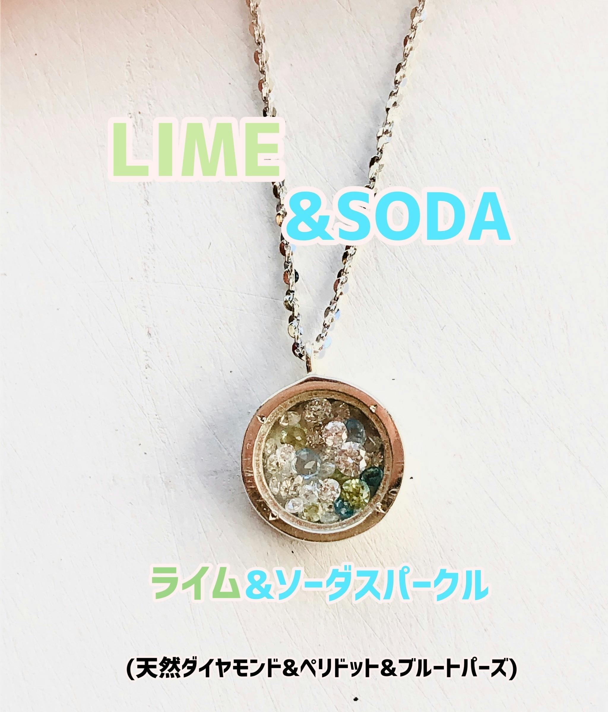 爽やかな明るめの水色カラーのブルートパーズとライムカラーのペリドットを混ぜ合わせ、天然ダイヤモンドとスパークル!