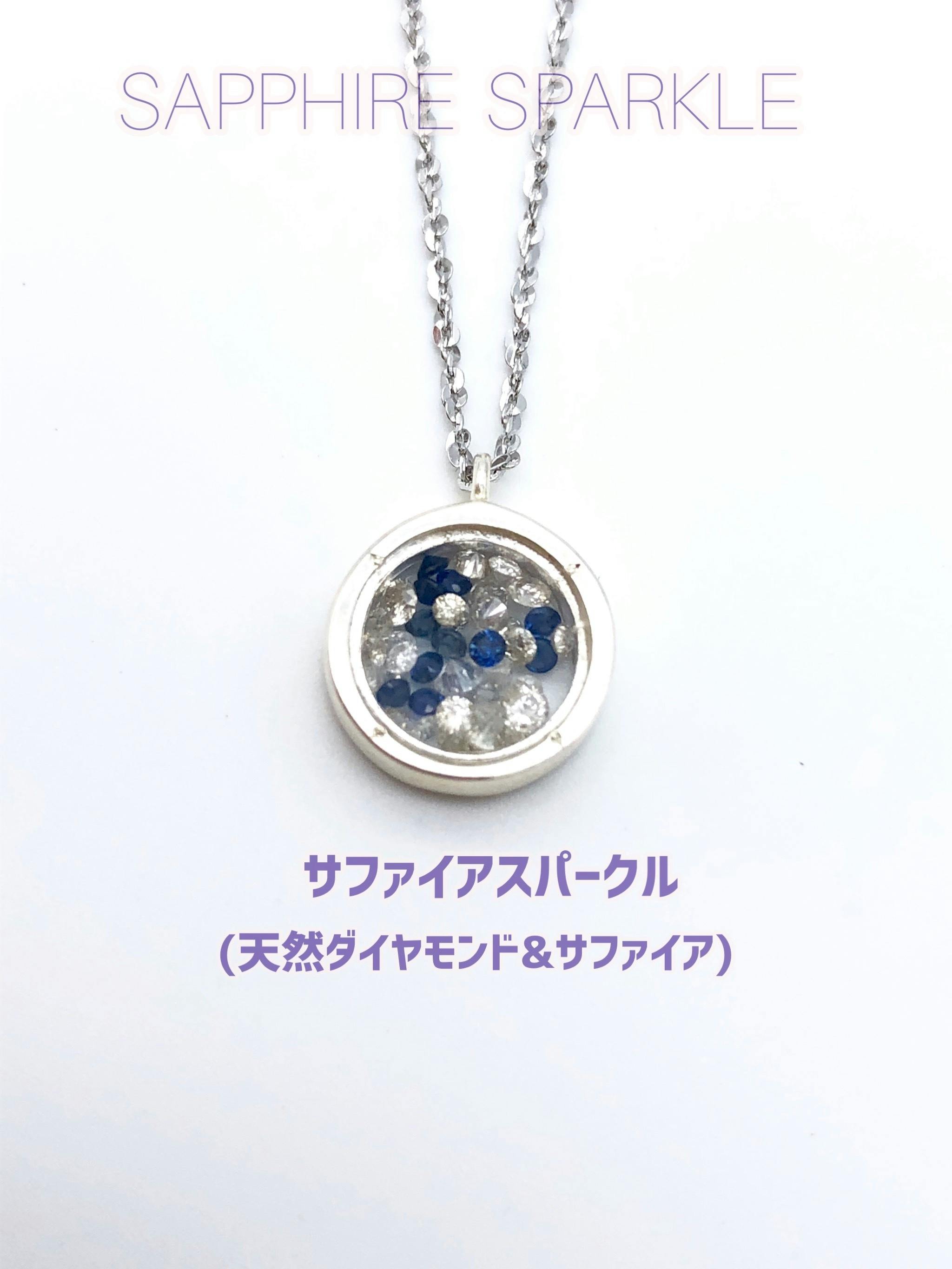 深い蒼が美しい気品あるブルーサファイアをお入れして、天然ダイヤモンドとスパークルさせました。