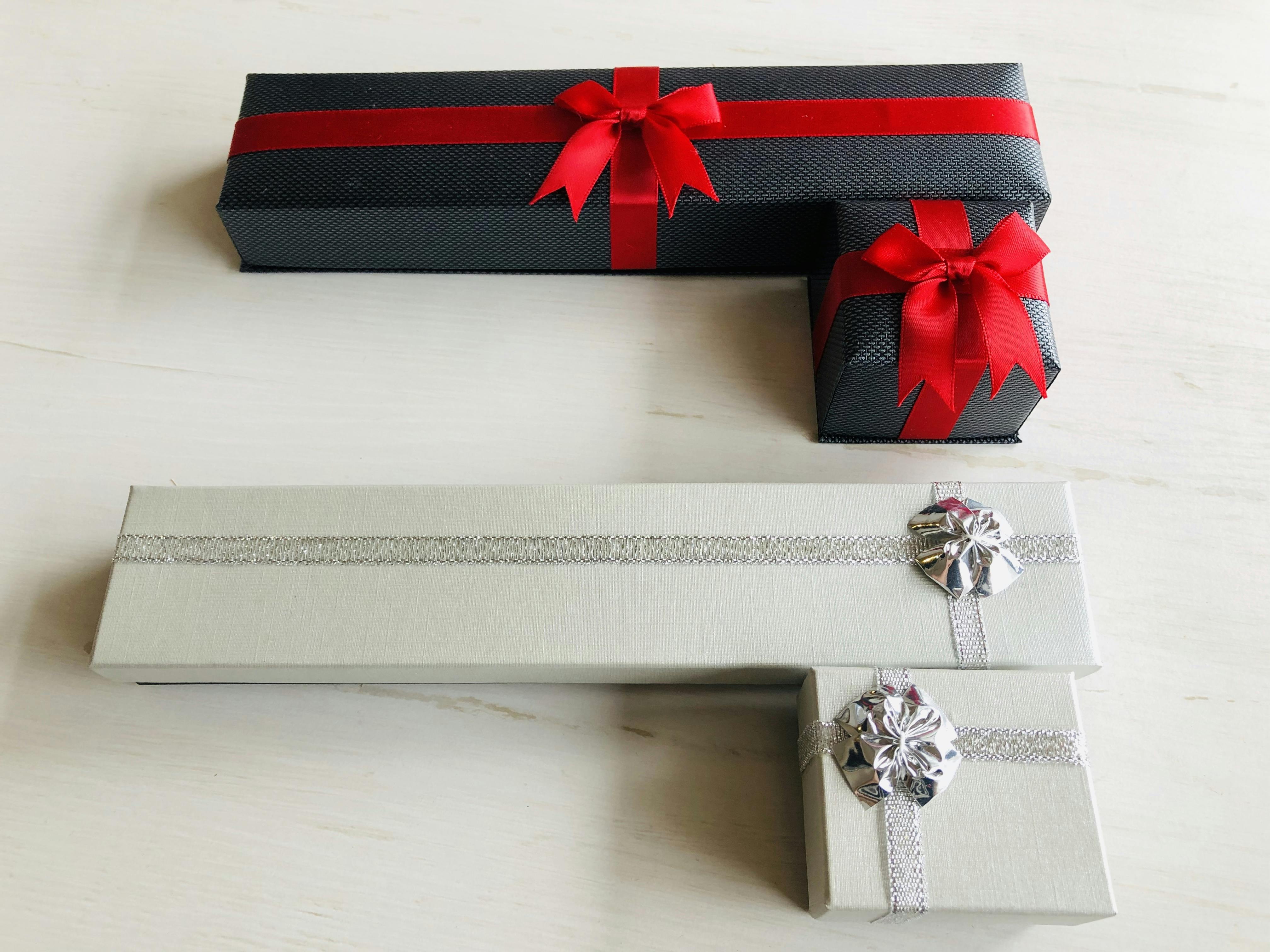 ②クールなシルバーにキラキラリボンのボックス 大か小でお選びください 注1)備考欄にてご指定下さい!! 例)①大 ①小 など
