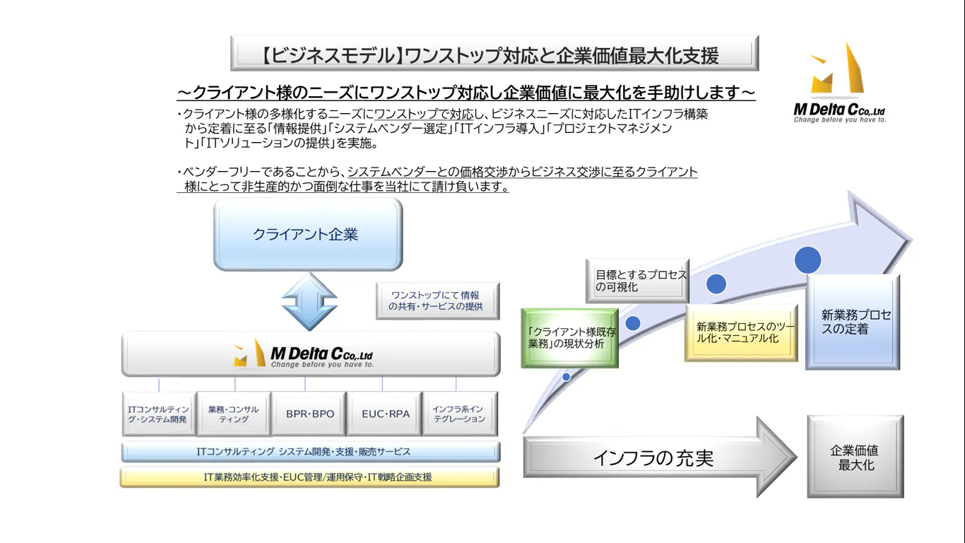 私たちM Delta Cは、ITを中心としたコンサルティング業務を行っております。