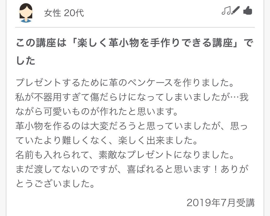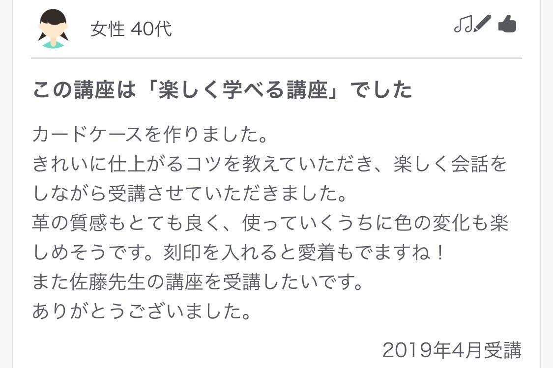 2019/11/20 07:38おはようございます。講師の佐藤です!宮崎のばあちゃんがクラウドファンディングをやっている事を知って支援しようか?って聞いてきました。クラウドファンディングの事もよく分かってないし、スマホもパソコンも使えないのにね!ほっこりして嬉しい気持ちになりました。孫は気持ちだけいただきました。昨日、リクエストワークショップをやってきました。地道な活動が後に生きると信じて丁寧にやっています。なので何度か来てくれる生徒さんのレベルアップは素直に嬉しい!↑生徒さん作品自分では気づかなくても最初の作品よりきれいに作れるようになってきています。こっから先は意識の差で実力に違いが出てくると思うのでそこも楽しみです!生徒さんを見ていて、行動に移すまでが早い人の方が面白い物を作る傾向にあると思います。これは色んな事に共通する事なので講師をやっていて自分も学ぶ事が多いです。最終日になって考えてもやっぱり根本は手づくりの楽しさを共有できる環境を作りたいって事。僕はたまたまレザークラフトをやっていますが集まって何か作るってだけでも楽しいんですよね。今回支援するに至らなかった方も作りたい物思いついたらご連絡下さい。思い立ったらすぐ動くが吉ですよ! プロジェクトも本当の本当のラストスパートです。関わってくれた皆さまへの感謝の気持ちは始めからずっと変わらなくてこの気持ちはじじいになっても忘れないようにしようと思います。控えめに言って今年1番の出来事です。今後の人生を変えるであろうタイミングの一つになる経験になりました。どんな結果になっても僕たちが教室を始めるという事は決まっています!今一度気になるアイテム、授業を受けてみたい等ありませんでしょうか?リターンで届くアイテムも授業のパスポートもクラウドファンディング特別価格となっていますのでお得なこの期間内にぜひご検討下さい!リターンのアイテムを選んで頂ける事、授業を受けに来てくれる事が僕達の活動の支援につながります。もうちょっとだけドキドキを共有していただき最後までお付き合いください。今日一日が皆さまにとってもいい一日でありますように!have a nice day! もっと見る