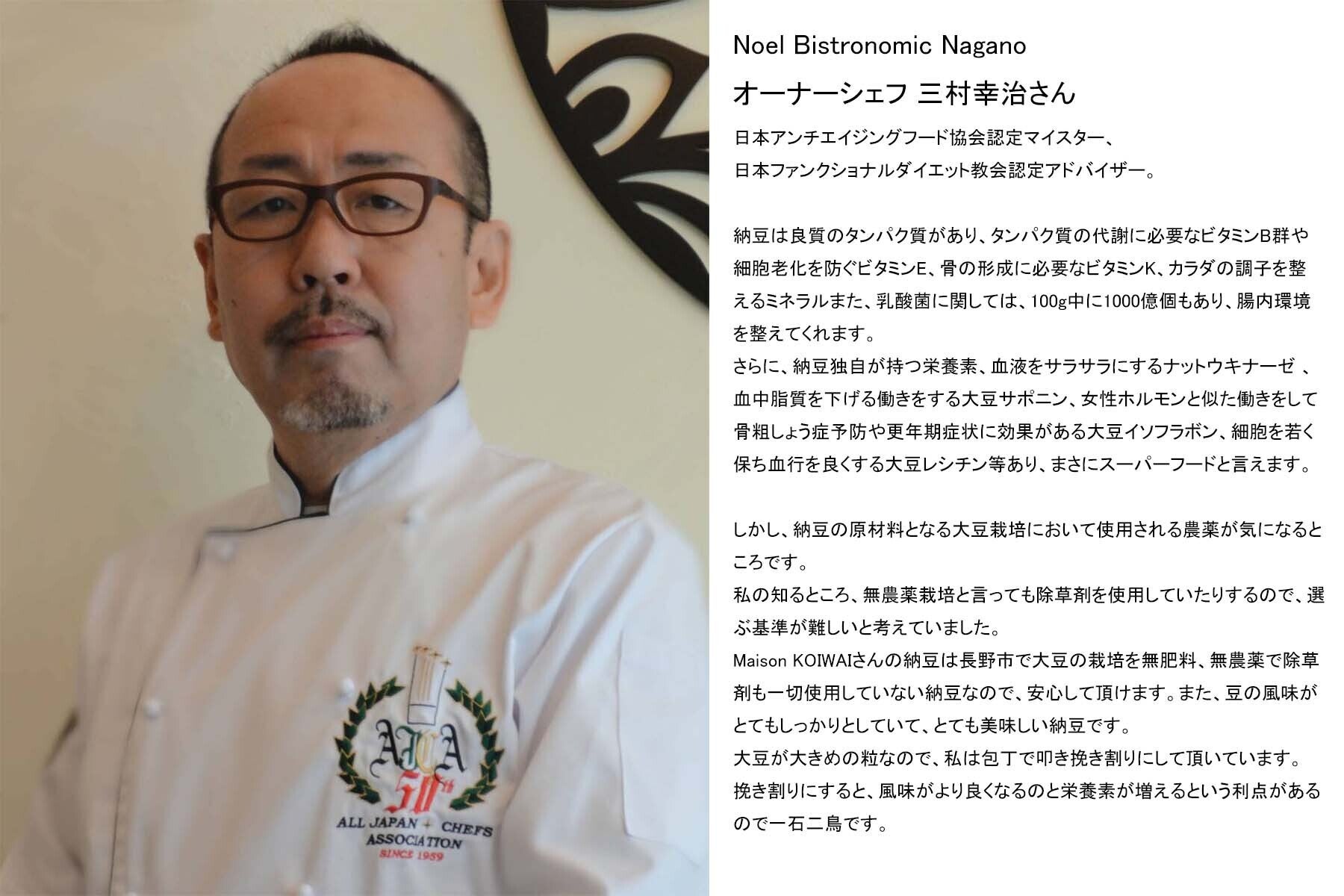 日頃、私の野菜や手前納豆を買ってくれているNoel Bistronomic Naganoオーナーシェフ三村幸治さんより「maison KOIWAIの納豆」について、コメントを頂きましたのでご紹介します。