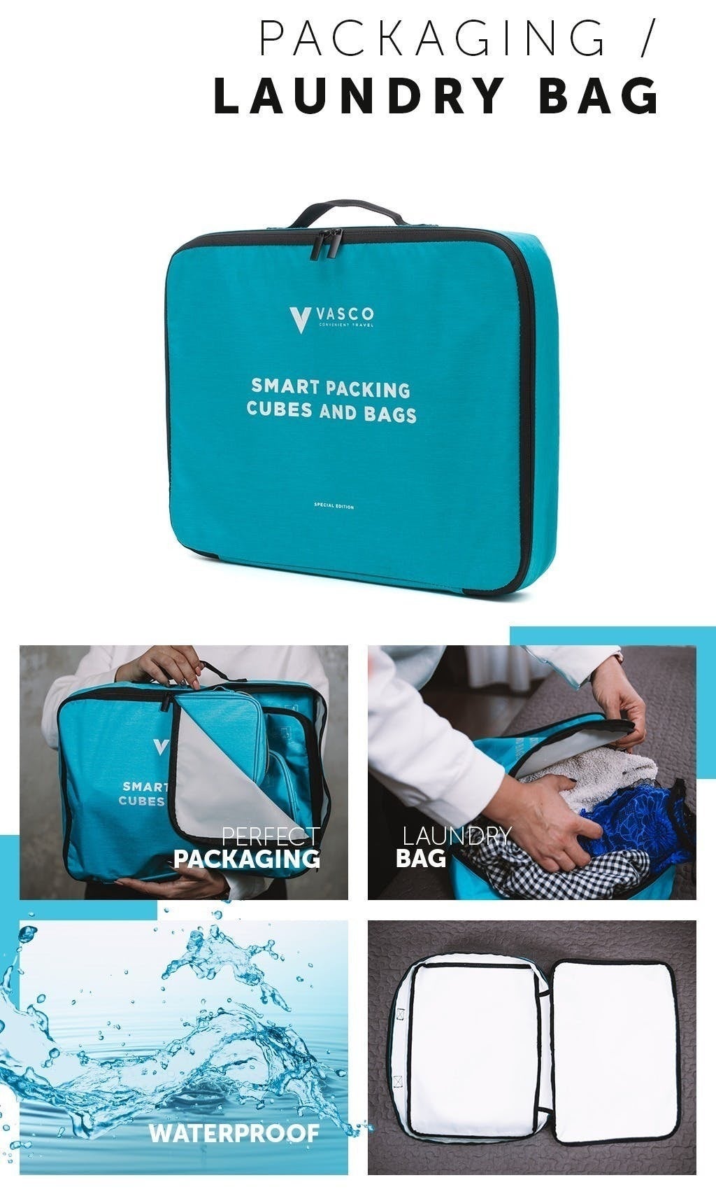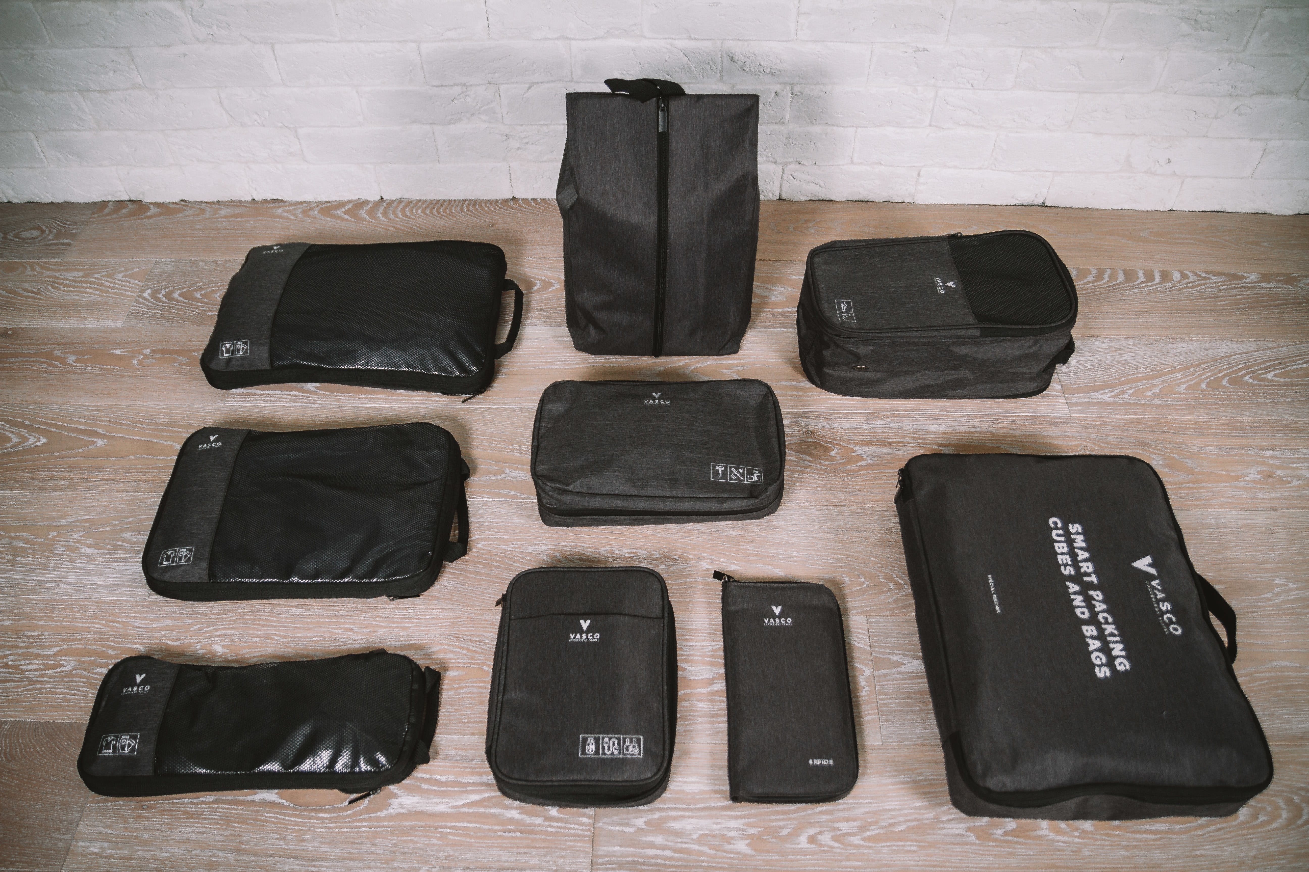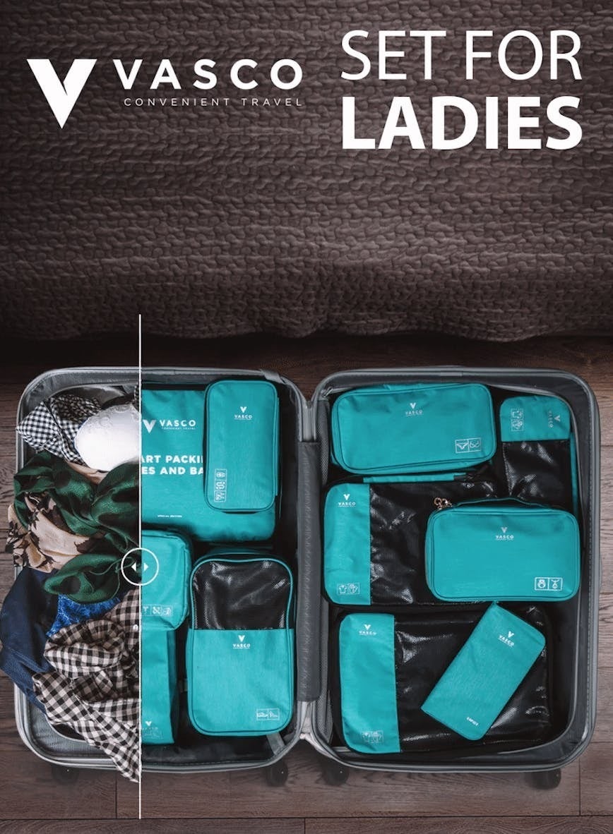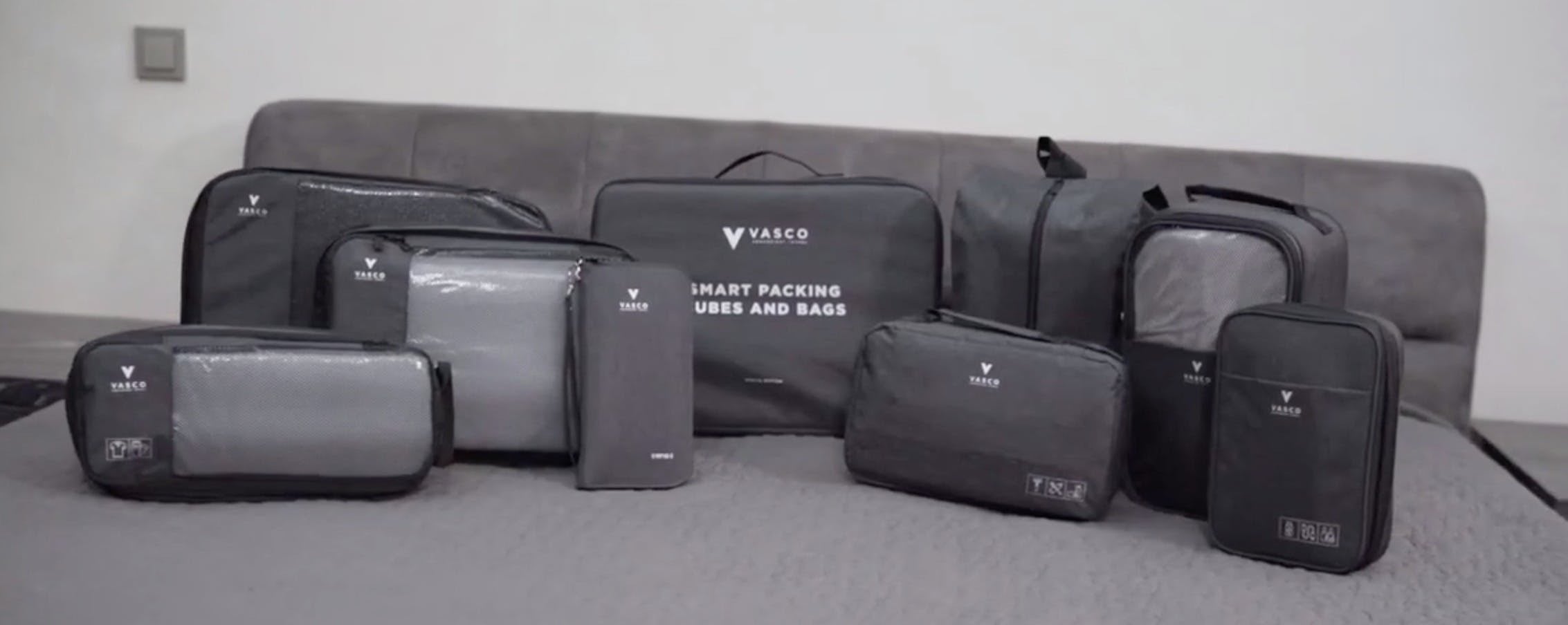 この新しい「VASCO」は、旅行中の荷物のパッキングを簡単にする9つの機能的なバッグ/パッキングキューブです。