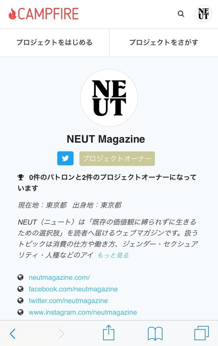 Campfireにログインされると、ユーザー名や支援されたコースなどを確認することができます!NEUTの場合は「NEUT Magazine」がユーザー名です。クラウドファンディングサイトに登録した際の、ユーザー登録完了メールにも、ユーザー名が書かれていますよ!
