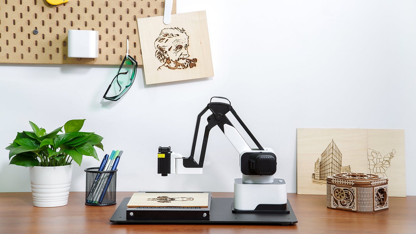 Rotricsは、0.05mmという極めて高い繰り返し精度を備えた初の汎用型卓上ロボットアームです。メーカーやデザイナー、その他卓上で意味のあるものを作りたい人のために設計されています!レーザー彫刻やレーザー切断、3Dプリントなどを簡単に行えます!