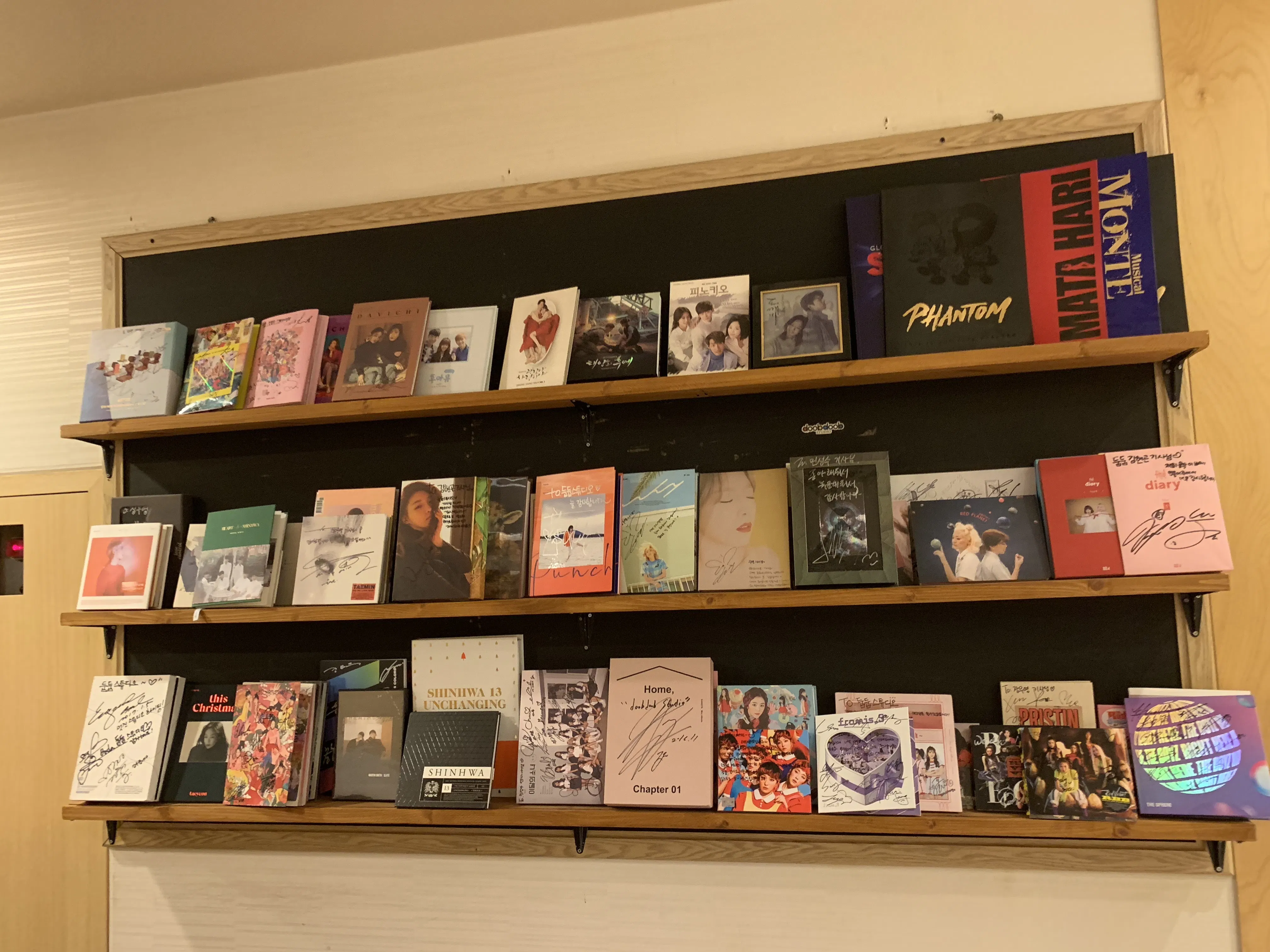 レコーディングブースには韓国の有名なアーティスト達のCDが沢山並んでいました。
