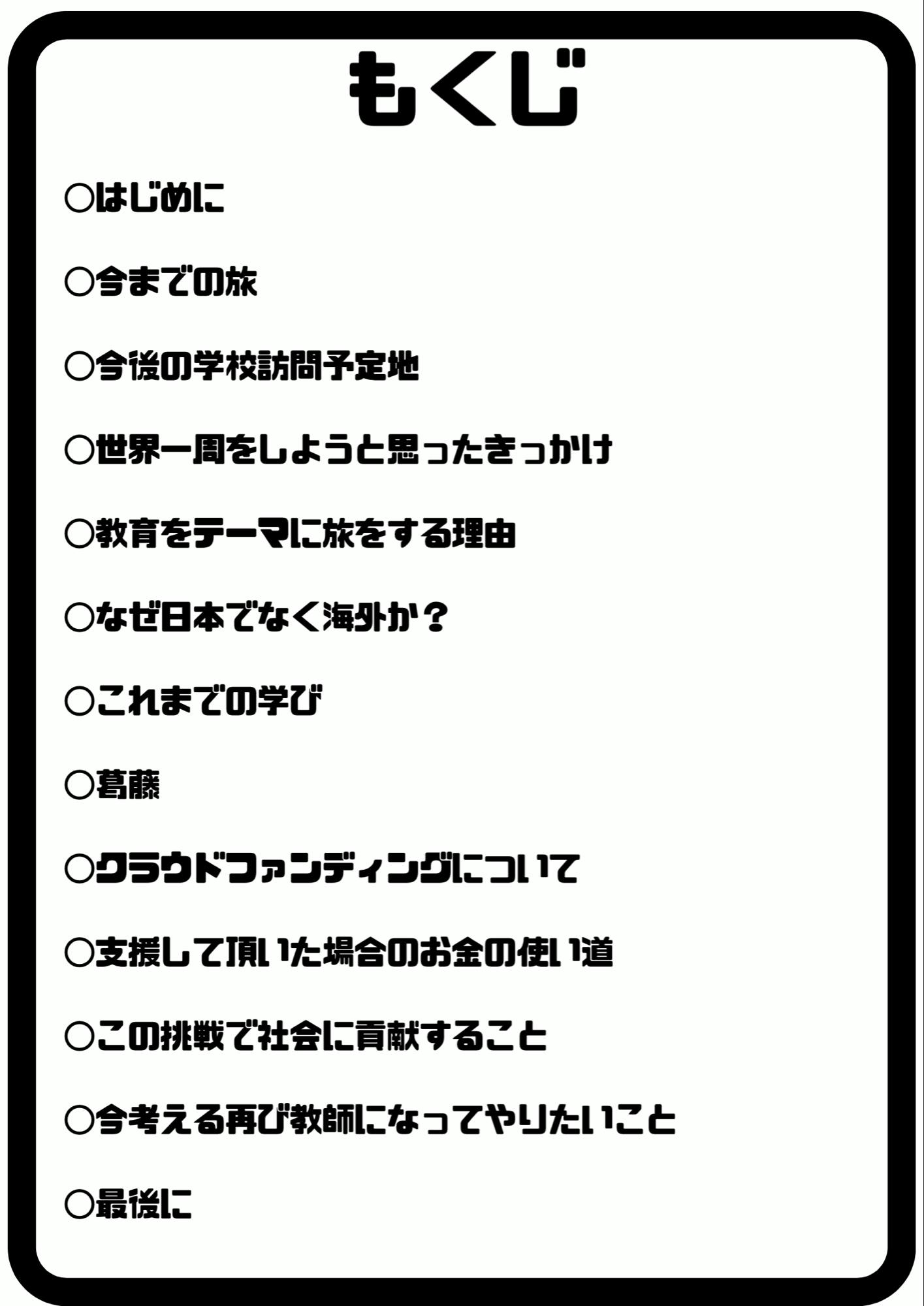 皆様から支援して頂くお金は、世界一周教育の旅の活動資金として、大切に活用させて頂きます。