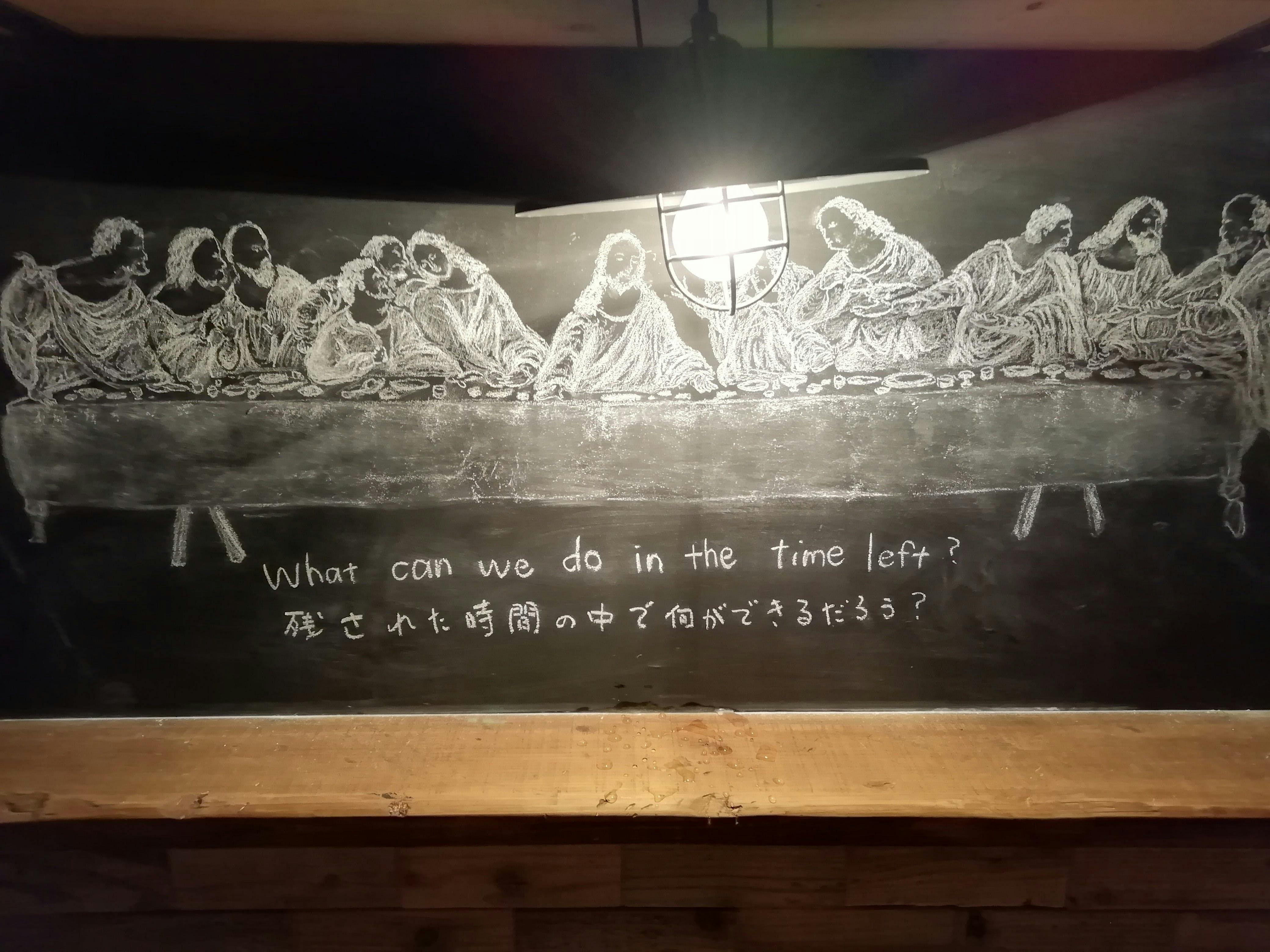 <店内壁面にはいくつか好きな人物の絵と共に言葉を書いています。>