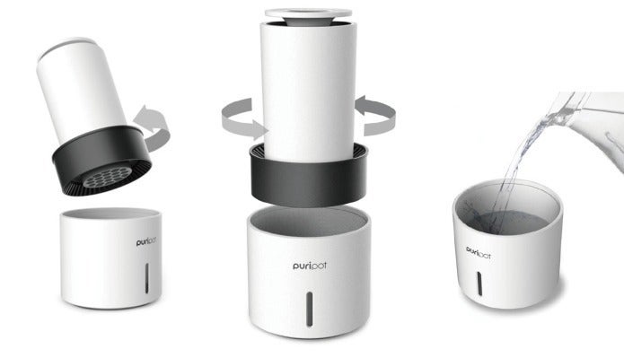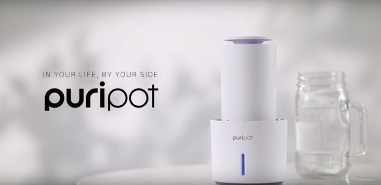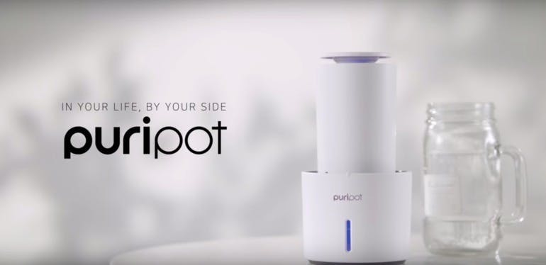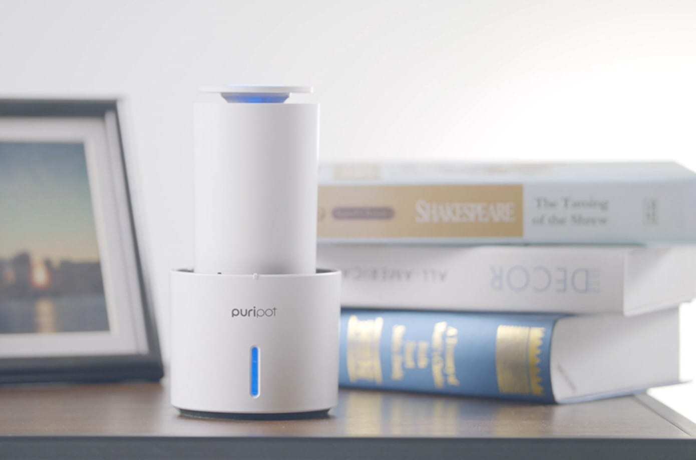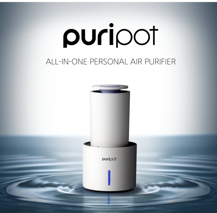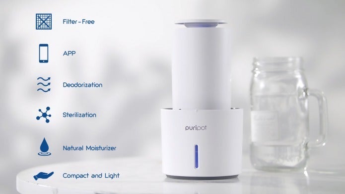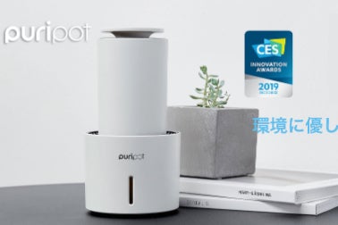puripotは、フィルター無しで手入れが不要、除菌、脱臭、加湿が同時に出来る超軽量ポータブル空気清浄機です。