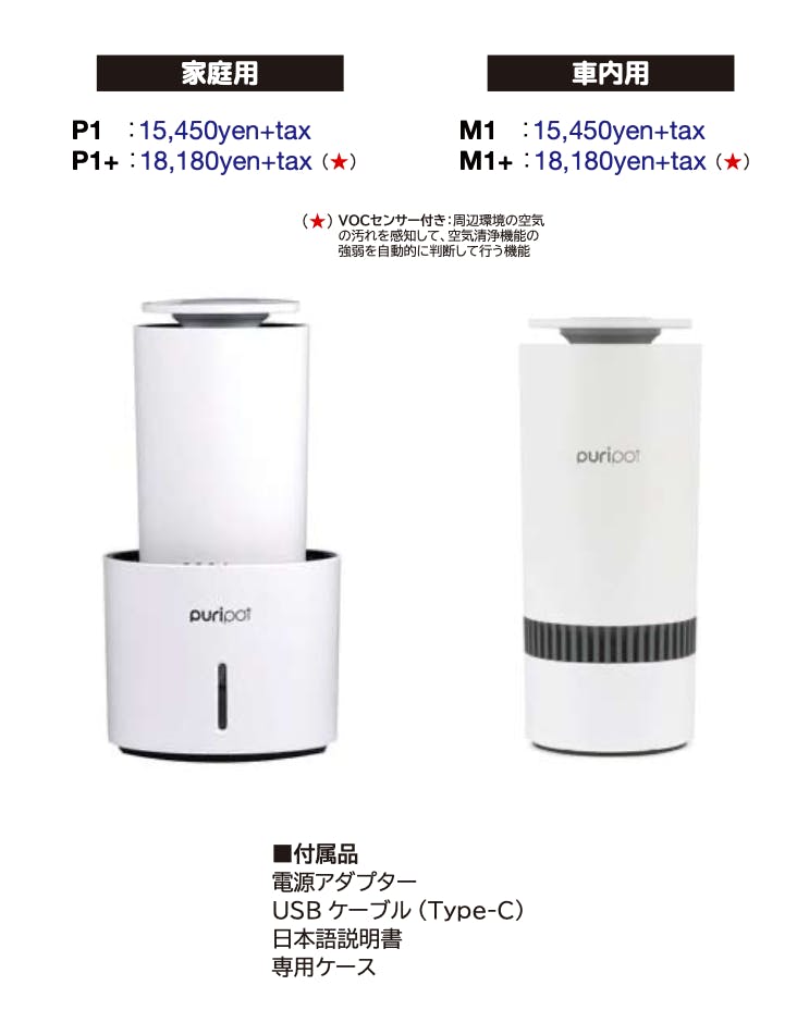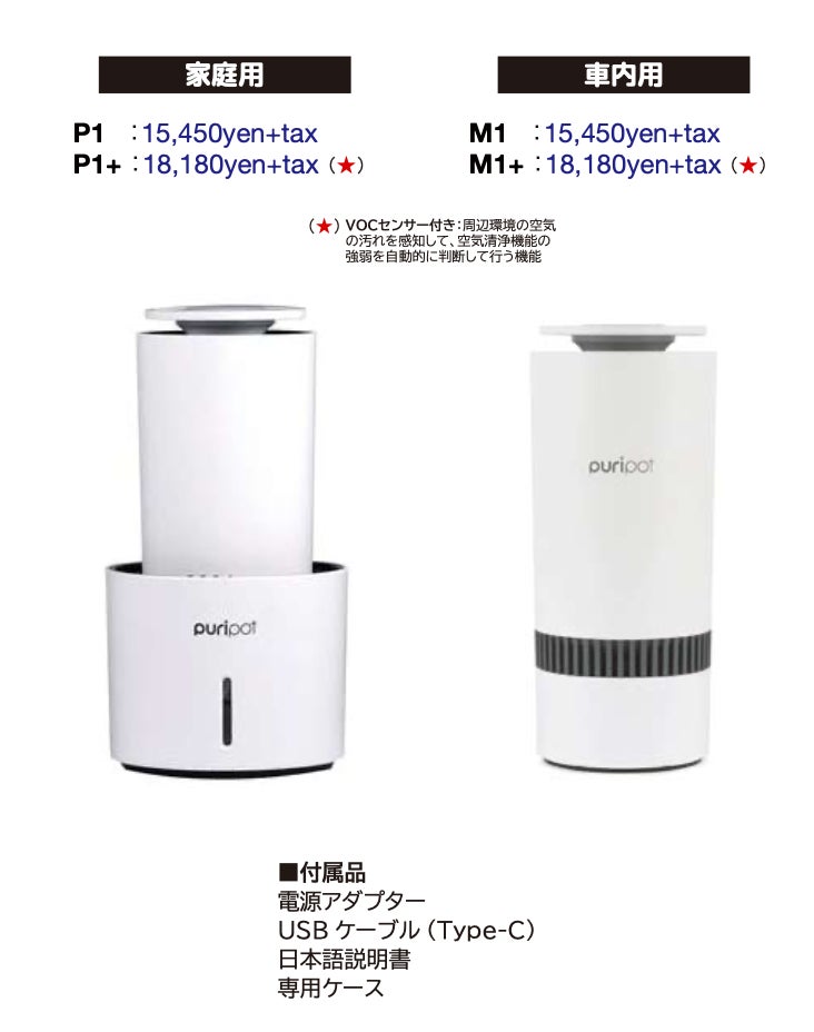水タンクの付属した「P1」と、コンパクトで持ち運びに便利、またドリンクホルダーにもぴったりのサイズの「M1」の2種類があります。