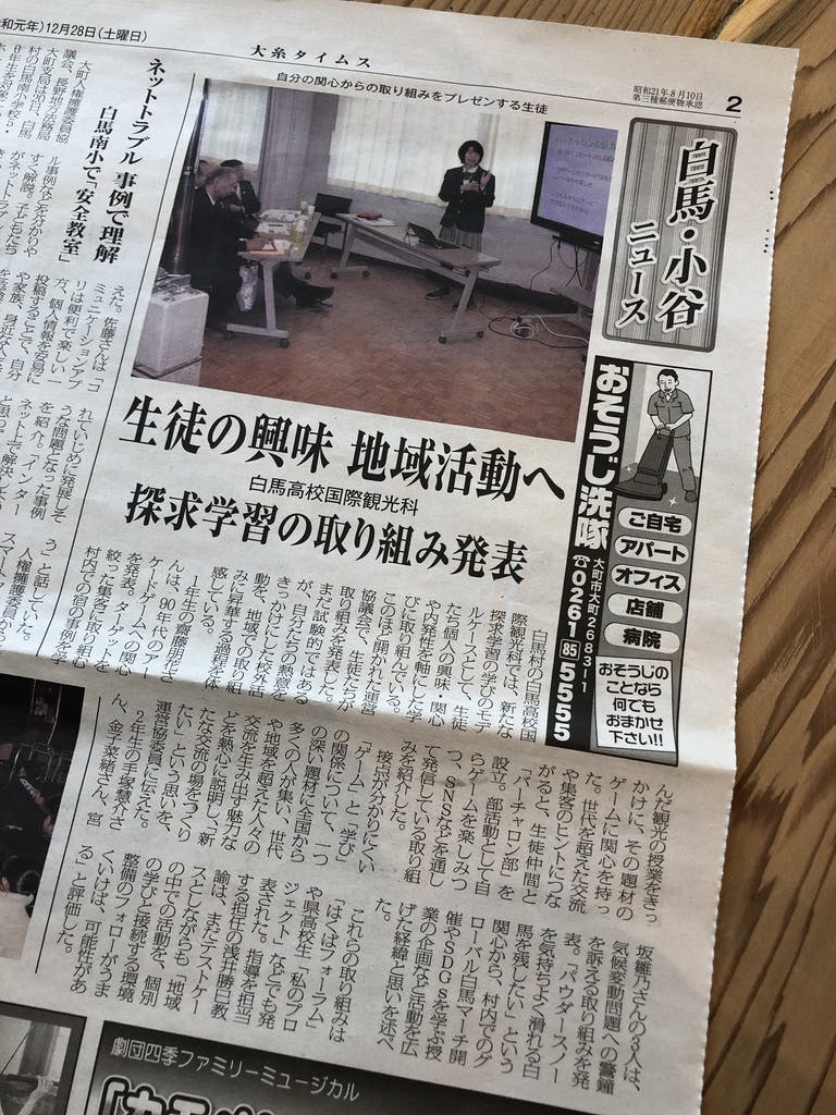 去年、白馬高校で「目的を絞った旅行商品デザイン」と言うテーマで木塵の取り組みを授業しました。その後、高校生の有志で部活が生まれました。