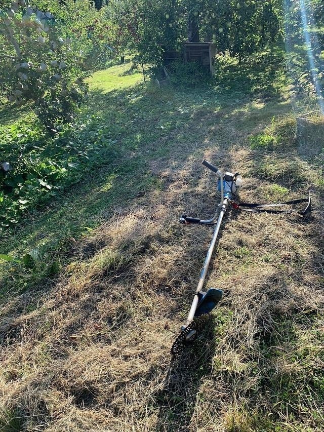 除草剤を一切撒かない草生栽培も行っていますが、現在、手作業で行っている除草は体力的にも、時間的にも限界があり、もひかん林檎を作るために、乗用式草刈機の購入を検討していますが、資金難に直面しています。
