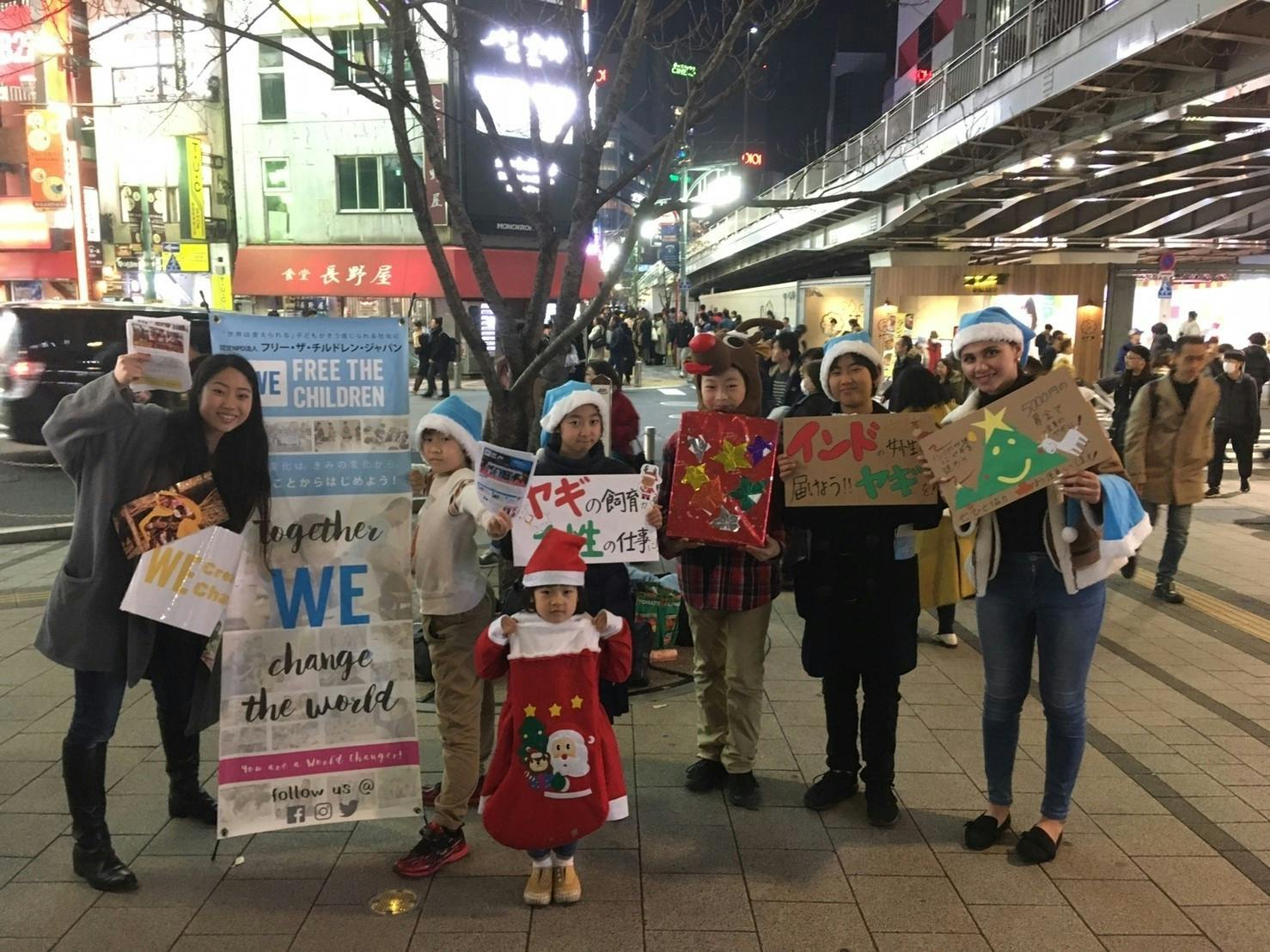 12月14日、WE Create Changeキャンペーンの一環として、「インドのママ達にヤギをプレゼント!」を目標に街頭募金活動をしました。