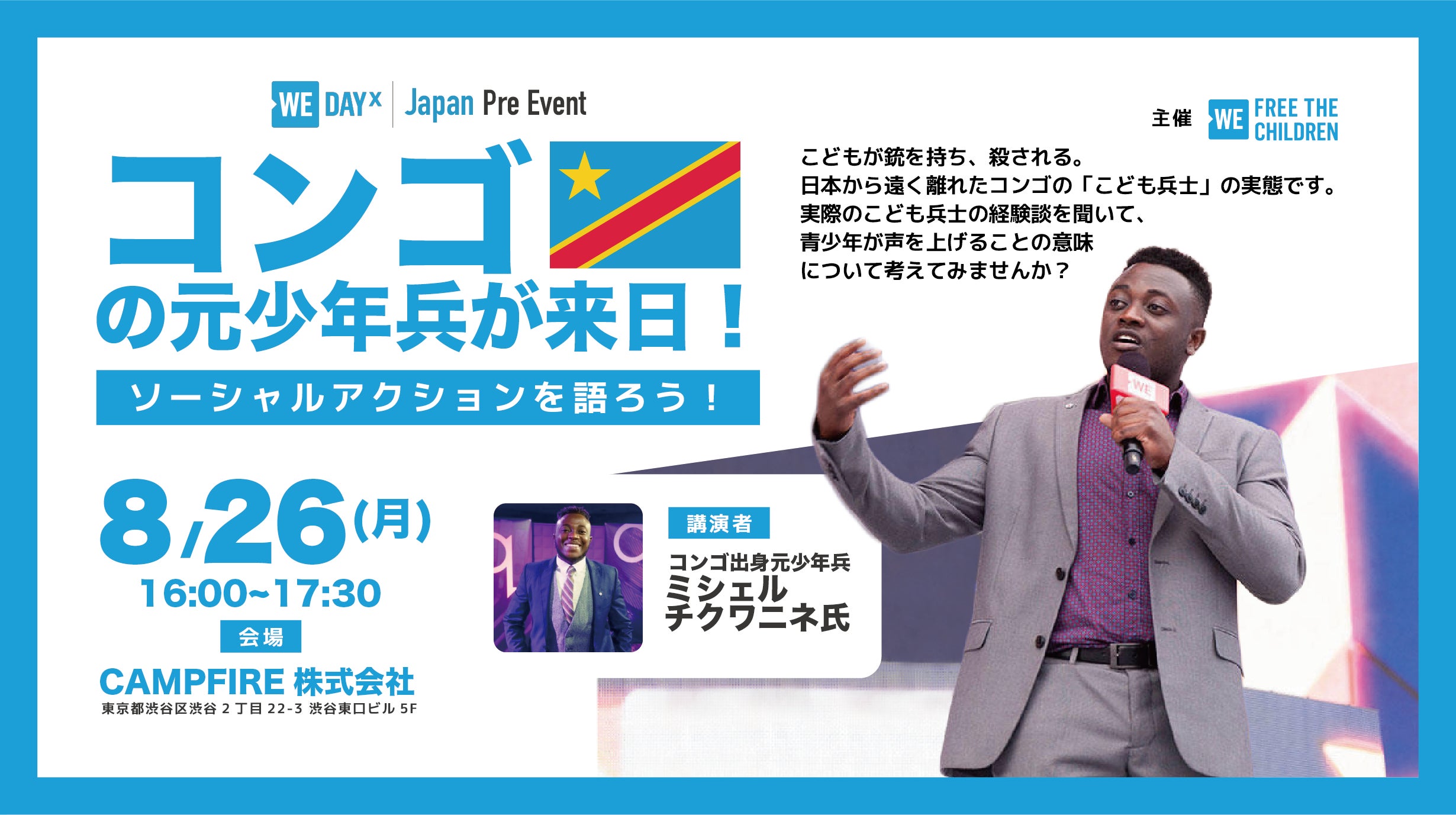 ===============================【プロジェクト27日目】パトロン様:10名 ご支援額:85,000円残り53日、6,915,000円御協力ありがとうございます。引き続き宜しくお願いいたします。===============================こんにちは。プロジェクト期間内の毎週月曜日は、ユースアンバサダー達の想いやWE Day Japanへの意気込みを投稿致します。今回は、コマキさん(18歳)のコメントを紹介します。----------------------------------------------------------------------今夏、大学に入っての初めての夏休みに、私はFree the Children Japan(以降FTCJと表記)が毎年開催している、テイク・アクション・キャンプにファシリテータとして参加させていただきました。補足:開催報告は公式ブログをご覧ください。ファシリテータには様々な定義がありますが、FTCJでは「参加者が話しやすい環境を作る」という定義をしています。それは、FTCJの二つ目のミッション『「子供には世界を変えられない」という考えから子どもをFree(解放)する』と深く繋がっています。FTCJ公式ウェブサイトよりこのミッションとファシリテータの役割がどう繋がっているのか、初めは分からなかったものの、『忍耐』という言葉を通して、身をもって理解できました。キャンプに向けて、ファシリテータは6月から研修を始めます。内容は、キャンプで様々なアクティビティを実施してする上で、感想や気付きの共有方法や、アクティビティ自体の目的等を話し合います。ファシリテータで大切な心構えは、「答えを教える」という上から目線ではなく、「参加者が答えに気付くよう促す」という姿勢です。この心構えによって、参加者はアクティビティに対して受身になることなく、主体的に考えるようになります。※2018年8月当時の画像(C)FTCJキャンプには、小5から高3までの幅広い年齢の子どもが参加します。その中で、様々な社会問題を一緒に考え、時には体を動かしたり、自分と向き合ったりしつつ、充実した5日間を過ごします。TACJではキャンプファイヤーも行う※2019年5月当時の画像(C)FTCJ自分と向き合い、自分が何を一番大事にしているのか考えるワーク※2019年5月当時の画像(C)FTCJ最後には、自分の得意な事と、社会問題を組み合わせ、自分のアクションプランを考えます。4日目にアクションプランを全体発表する(公式ブログより)(C)FTCJ(事務局補足:この手法を、当団体では「Gift +Issue=Change」と呼称しています)※2015年5月当時のキャンプの画像(C)FTCJファシリテータは、参加者達の成長を間近で感じることができ、自分も最後は、みんなの前で泣いてしまいました。(笑)ファシリテータの「促す」という心構えを実行していくには、常に忍耐が必要です。参加者が自分なりの答えを出すまで、ファシリテータはひたすら傾聴します。ここで言う『忍耐』とは、『信頼』と言い換えることも出来ます。相手の無限大の可能性をどこまで信じ続けられるかが、最終的に子どもの発見へ繋がっていくのです。今回のWE Day Japanは、参加者が若者だけであるからこそ、大人がそこに対してどのような気持ちを持っているかという点に私は焦点を置いています。「子ども達が最も信頼を置いているのは大人である」という社会を創るために、WE Day Japanでは、子ども達が自分自身の無限大の可能性を見出し、大人達が今まで見てきた世界を一変させます。ご支援のほどよろしくお願いいたします。