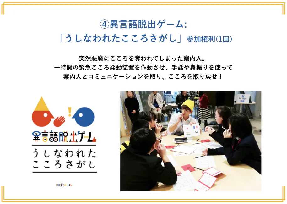 ❹異言語脱出ゲーム:「うしなわれたこころさがし」参加権利(1回)