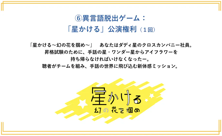 ❻異言語脱出ゲーム:「星かける」公演権利(1回)