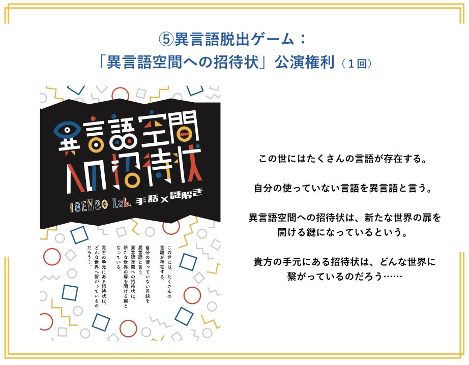 ❺異言語脱出ゲーム:「異言語空間への招待状」公演権利(1回)