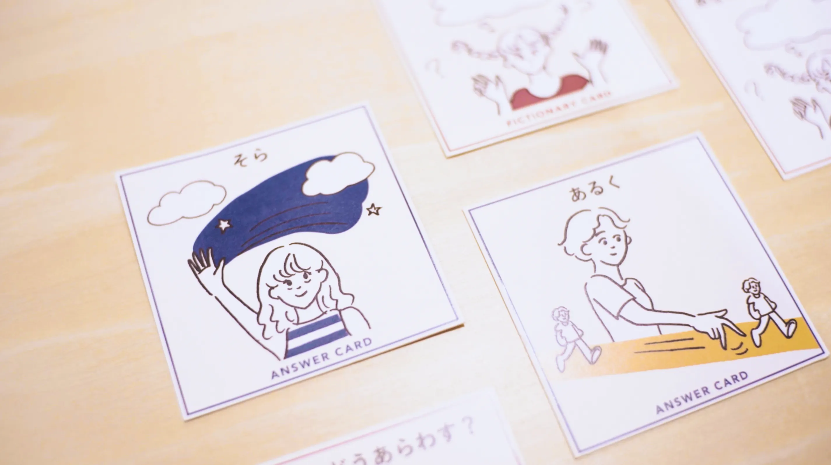 毎回のプレイごとにカードをひいて出た単語から、みんな1人ひとりその言葉の表現を考え、