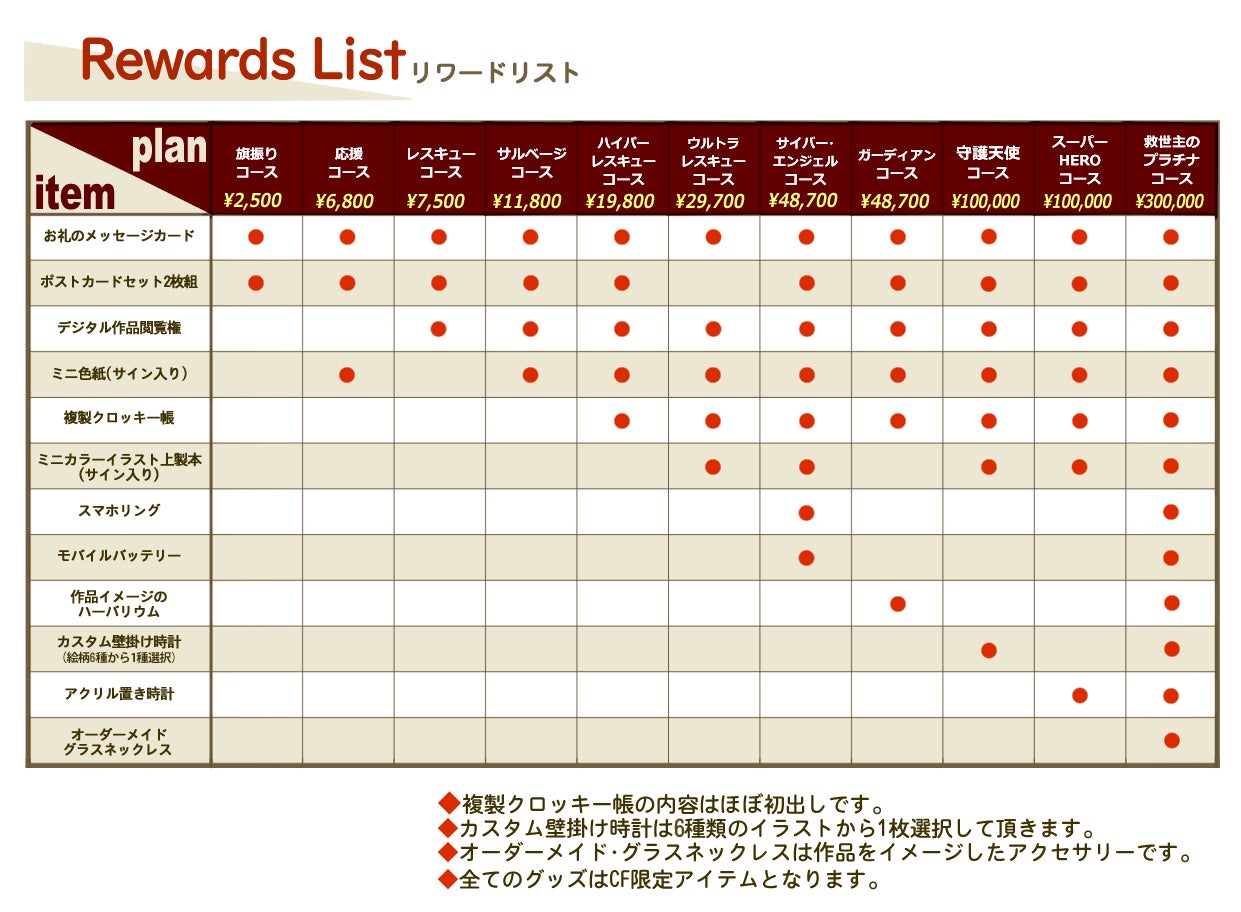 ※閲覧公開の作品数と公開期間はプロジェクト成立後にご支援総額に応じて増ページと公開期間の延長をいたします。